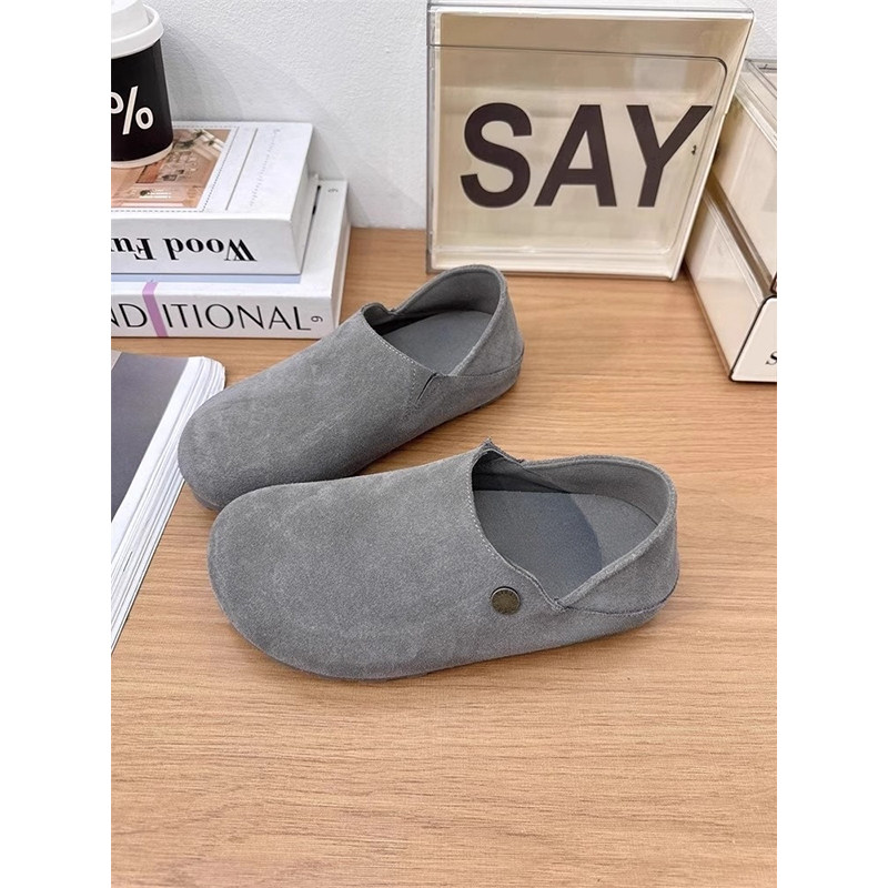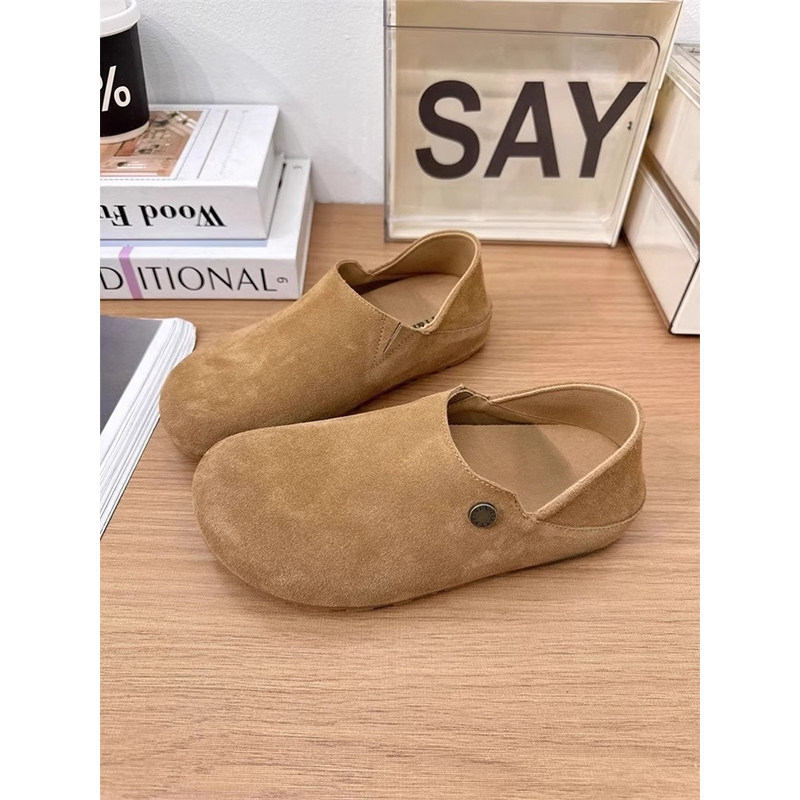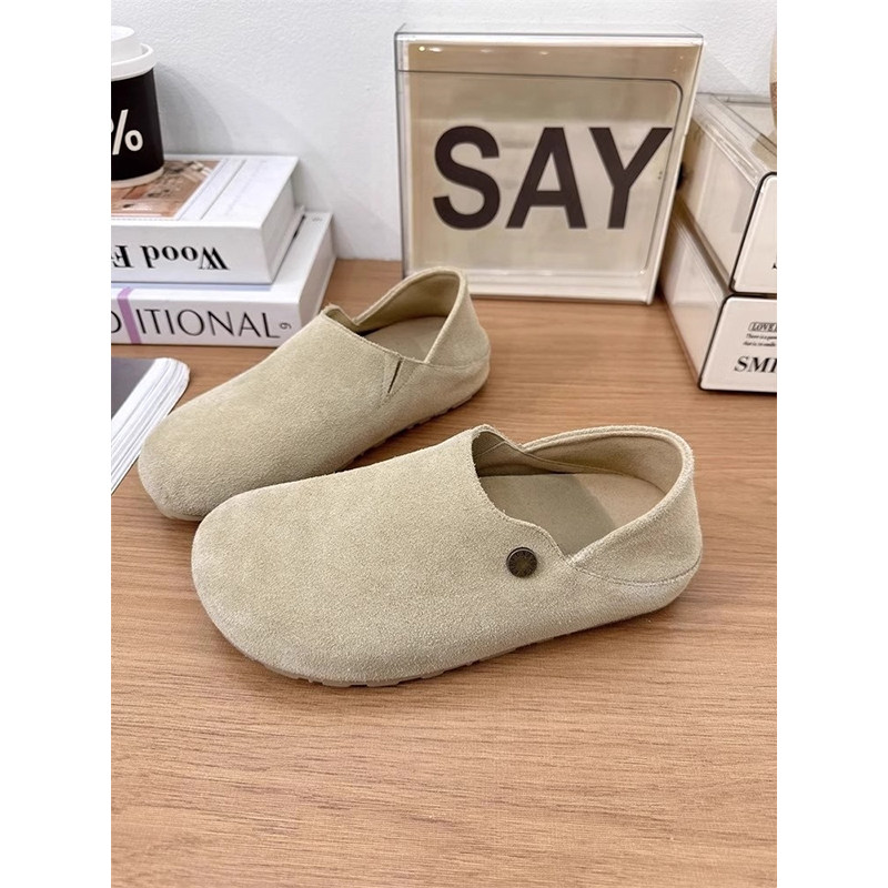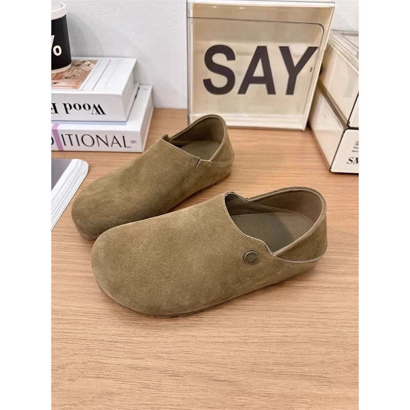 真皮两穿勃肯鞋女2025春秋新款平底豆豆单鞋一脚蹬博肯鞋内增高