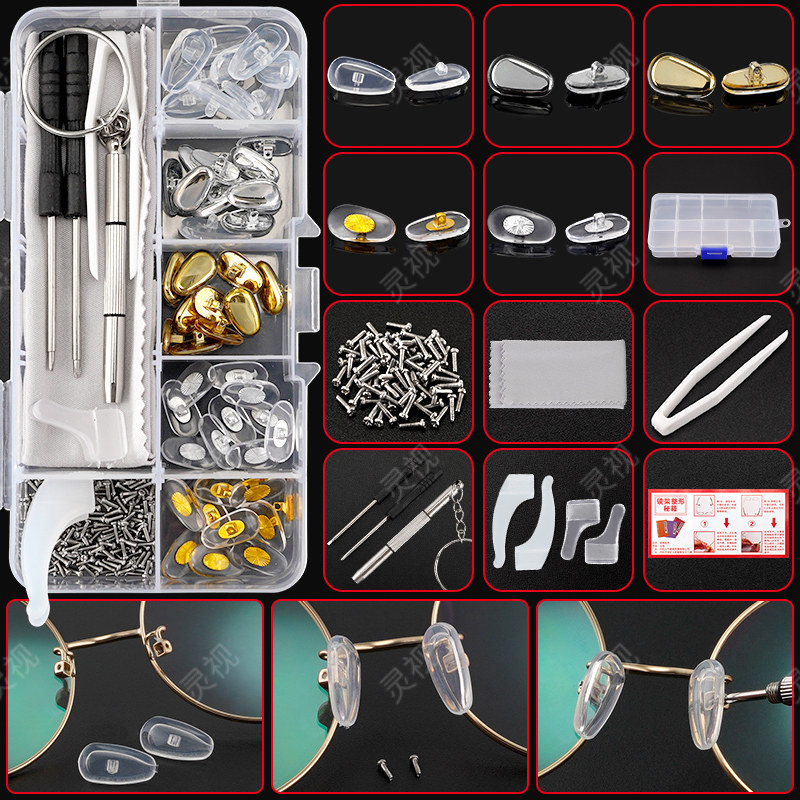 眼镜鼻托硅胶配件维修盒防滑压痕空气囊鼻梁托鼻拖替换气垫调整
