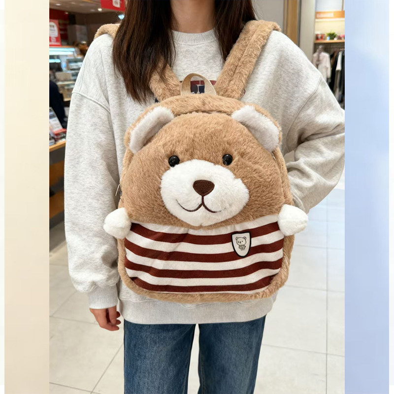 萌系背带裤松鼠毛绒双肩包软fufu元气卡通可爱少女心日常出游背包