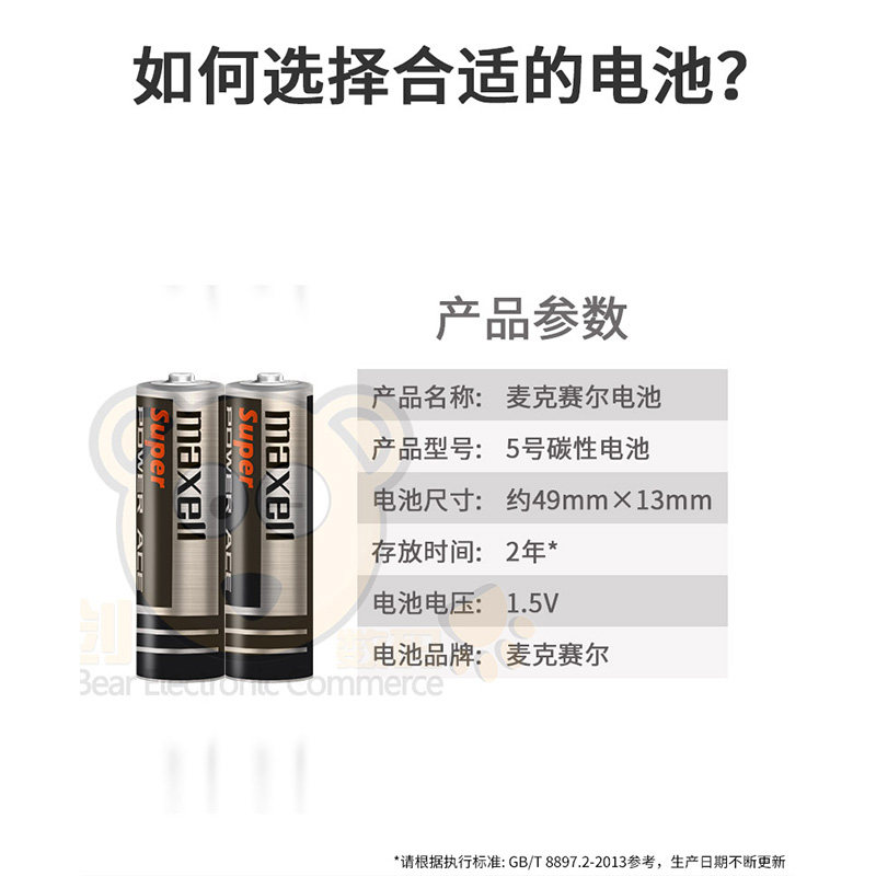 麦克赛尔5号电池五号儿玩具家用干电池AA体脂称挂闹钟表额温枪体温枪R6P灯具电视空调遥控器1.5V