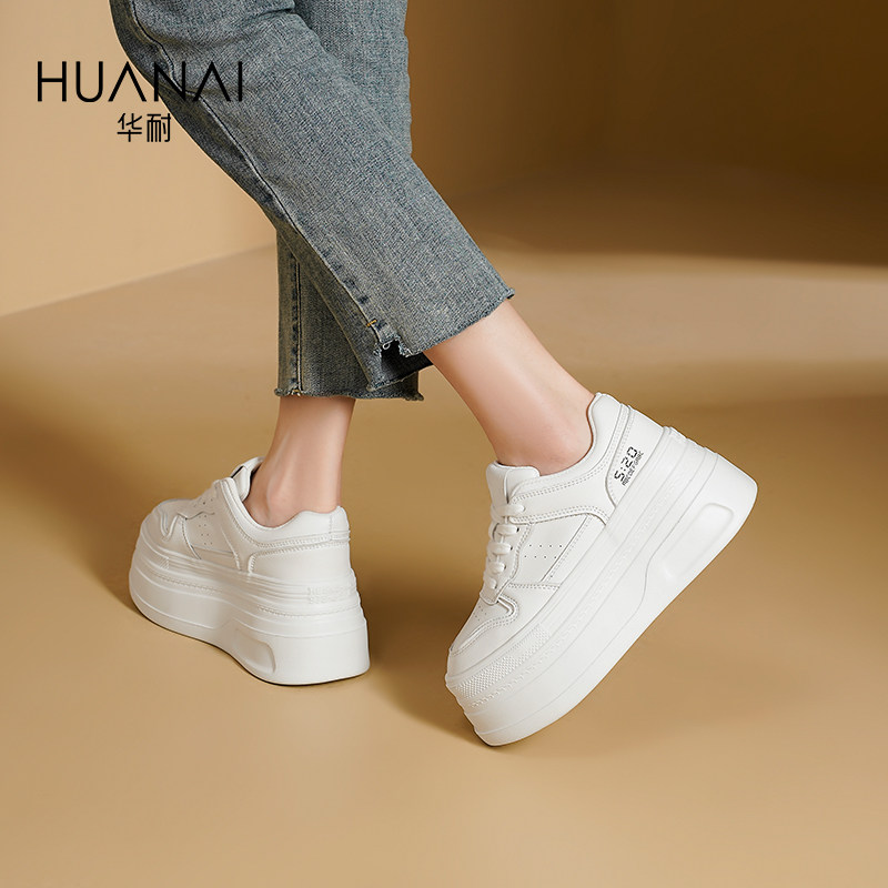 华耐白色增高7cm厚底鞋超高小个子百搭松糕平底圆头休闲小白鞋