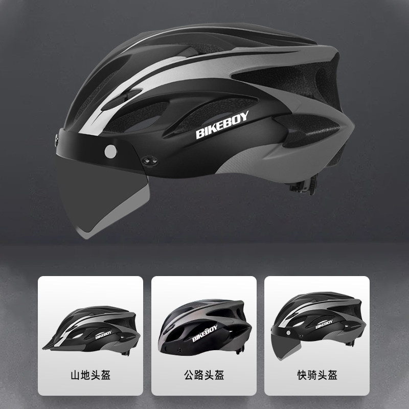 自行车头盔山地公路带风镜一体成型男女通用安全磁吸式骑行头盔