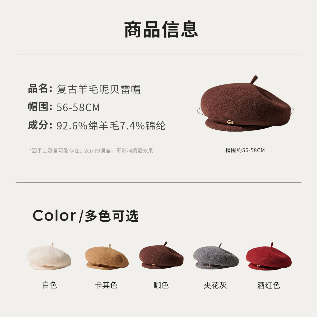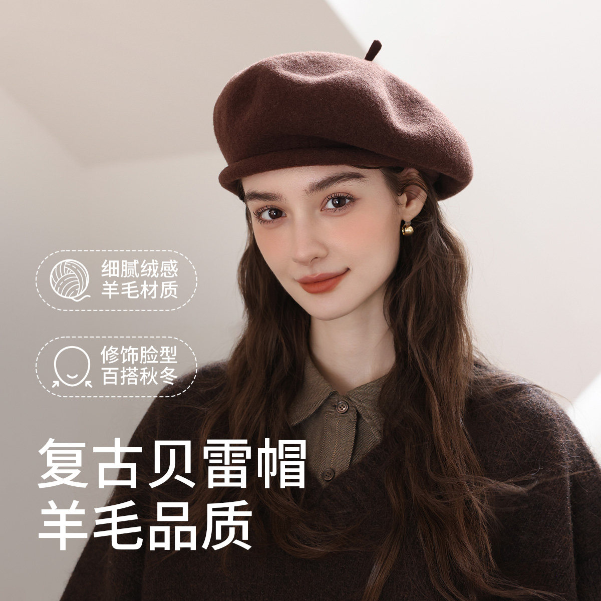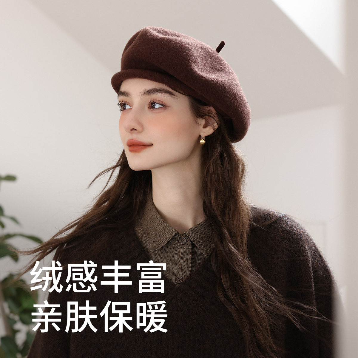 真享贝雷帽羊毛帽子女秋冬季2025新款百搭高级感保暖显脸小画家帽