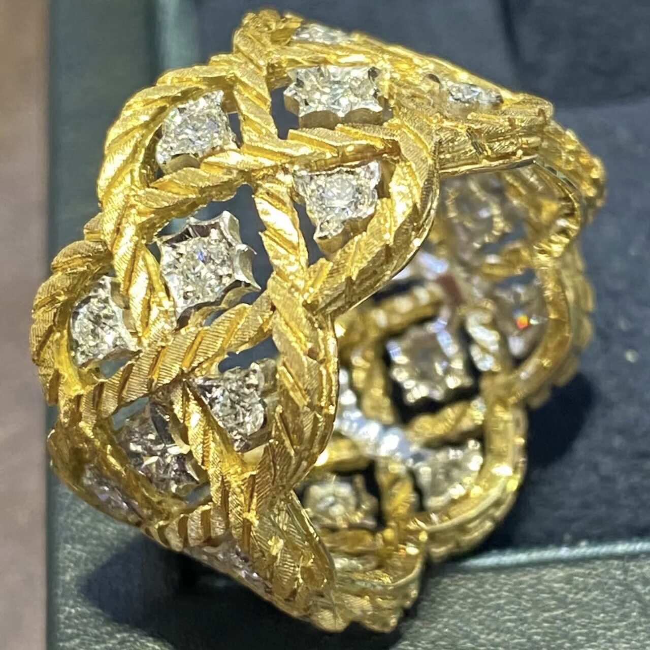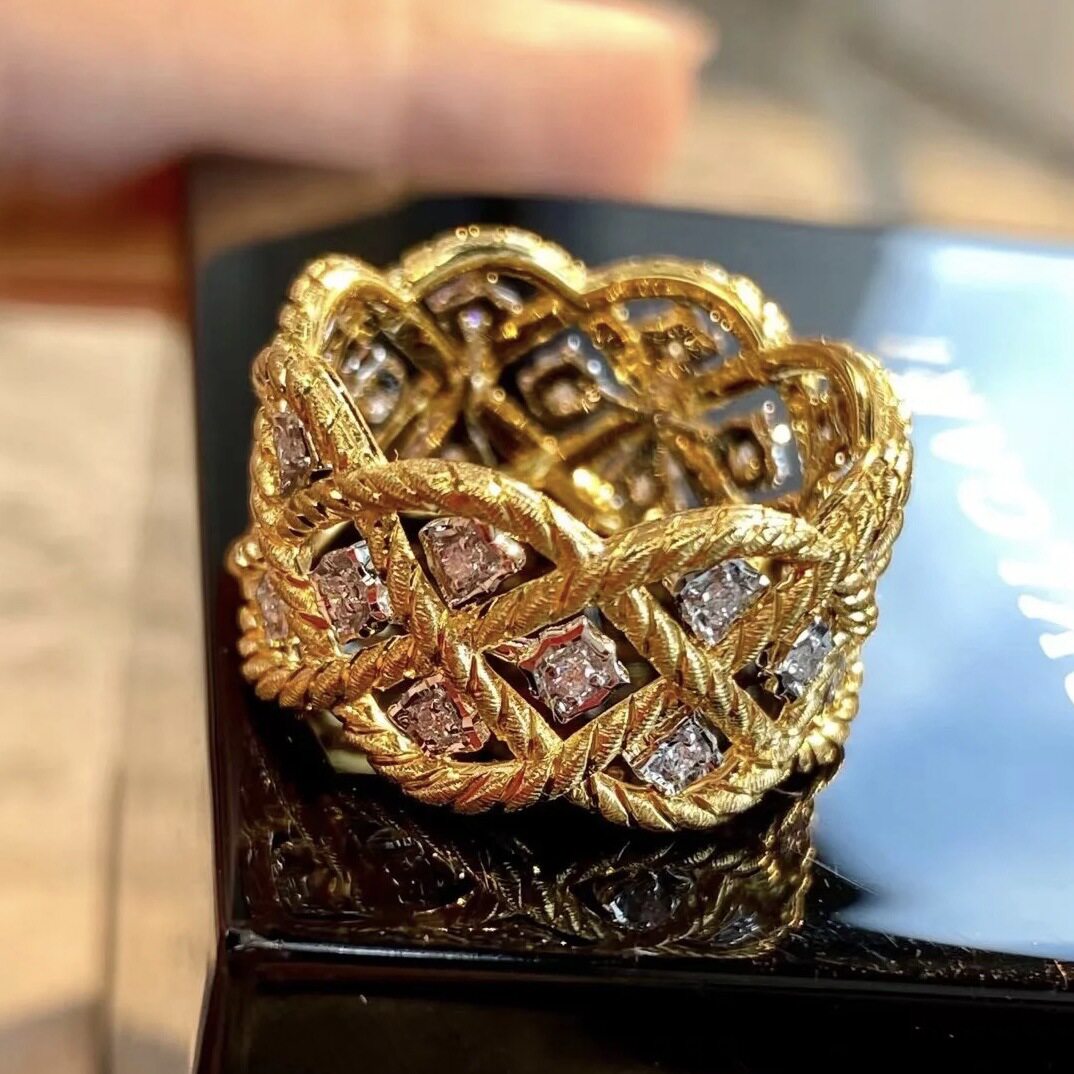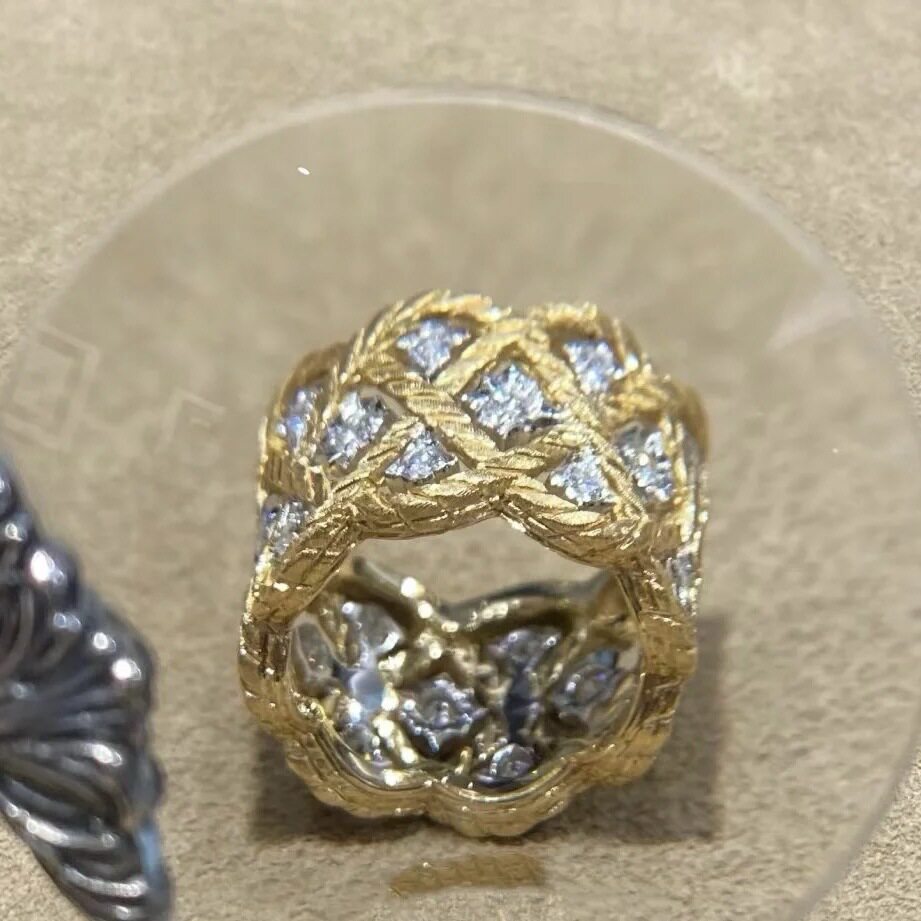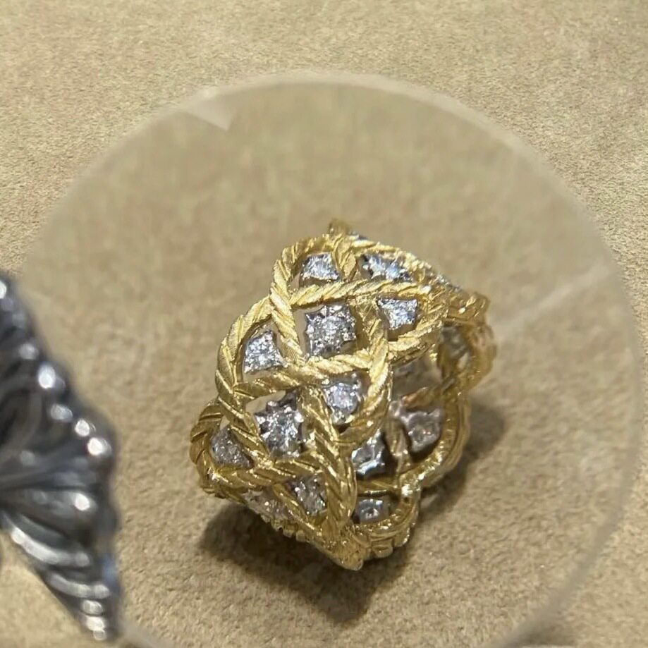 轻奢小众复古金色宽版镶钻蕾丝戒指中古宫廷风镂空设计感新款指环