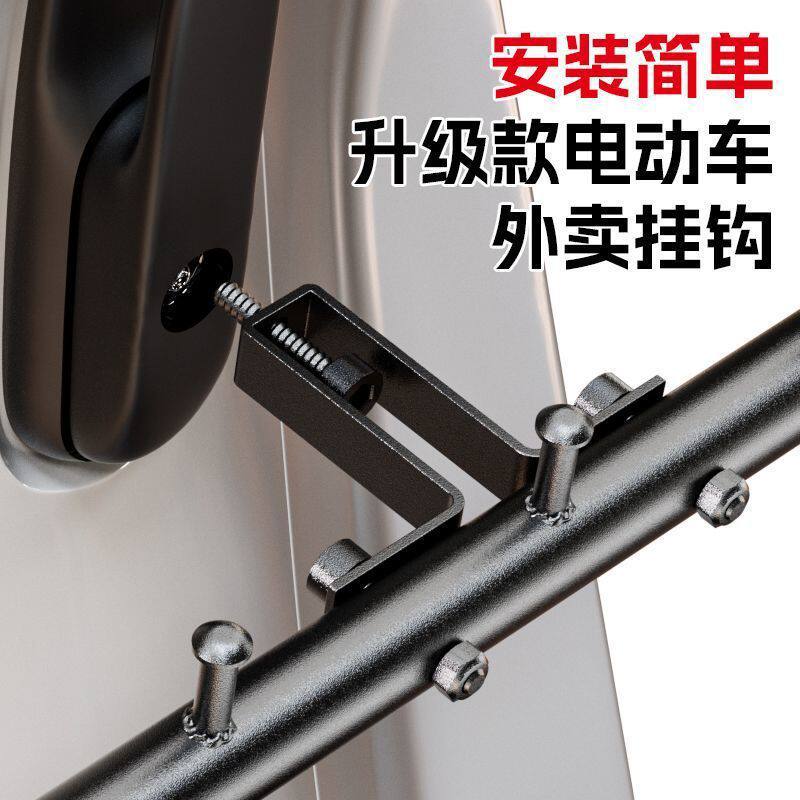 电动车外卖挂钩一排不锈钢前置横杆挂餐勾通用骑手跑腿送餐固定架