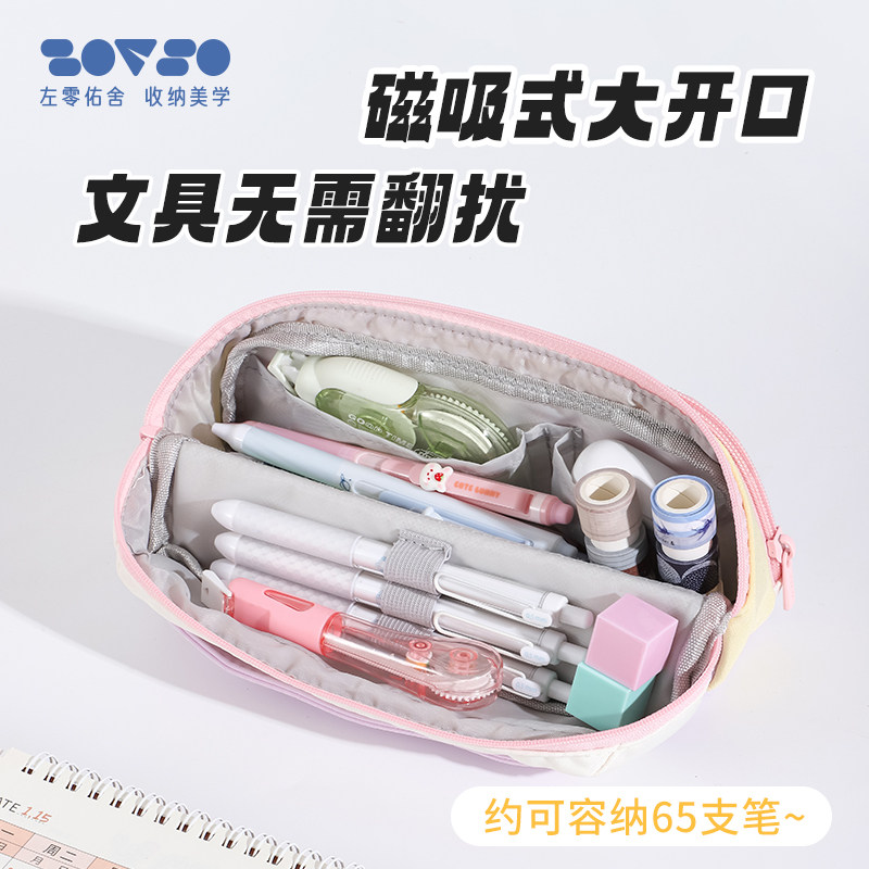 手提翻折磁吸笔袋大容量学生用文具袋高颜值儿童铅笔文具盒横版高中生初中生2026新款高颜值开学文具袋拉链式