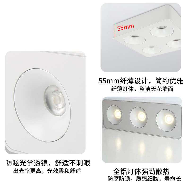 超薄明装斗胆灯客厅卧室筒灯全光谱高显色深防眩l射灯无主灯照明