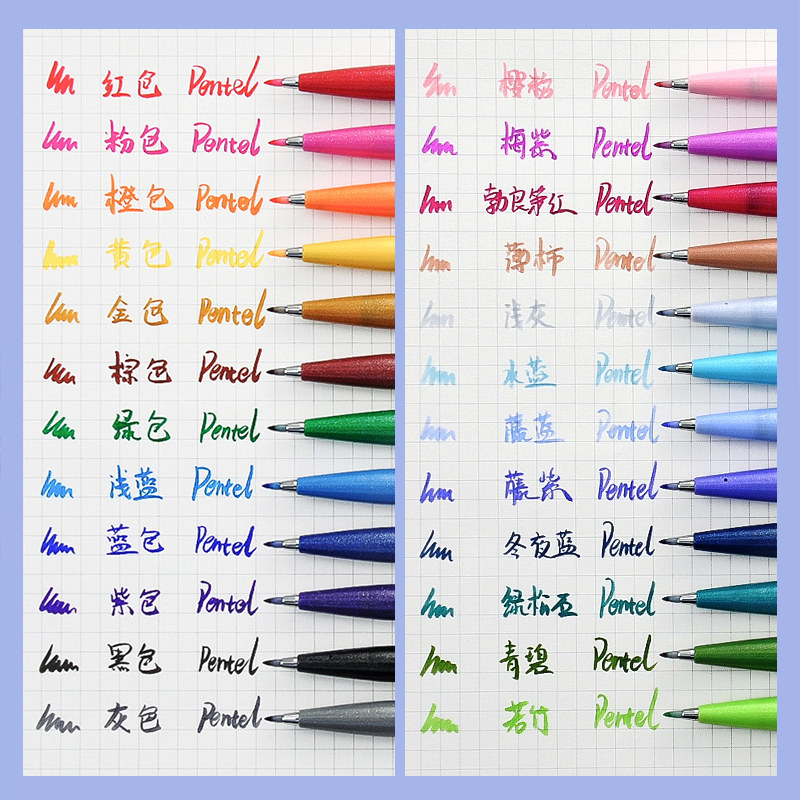 日本派通TOUCH彩色软头毛笔Brush软笔手账贺卡学生练字签字秀丽笔brush字帖花体英文贺卡彩绘笔手绘笔马卡龙