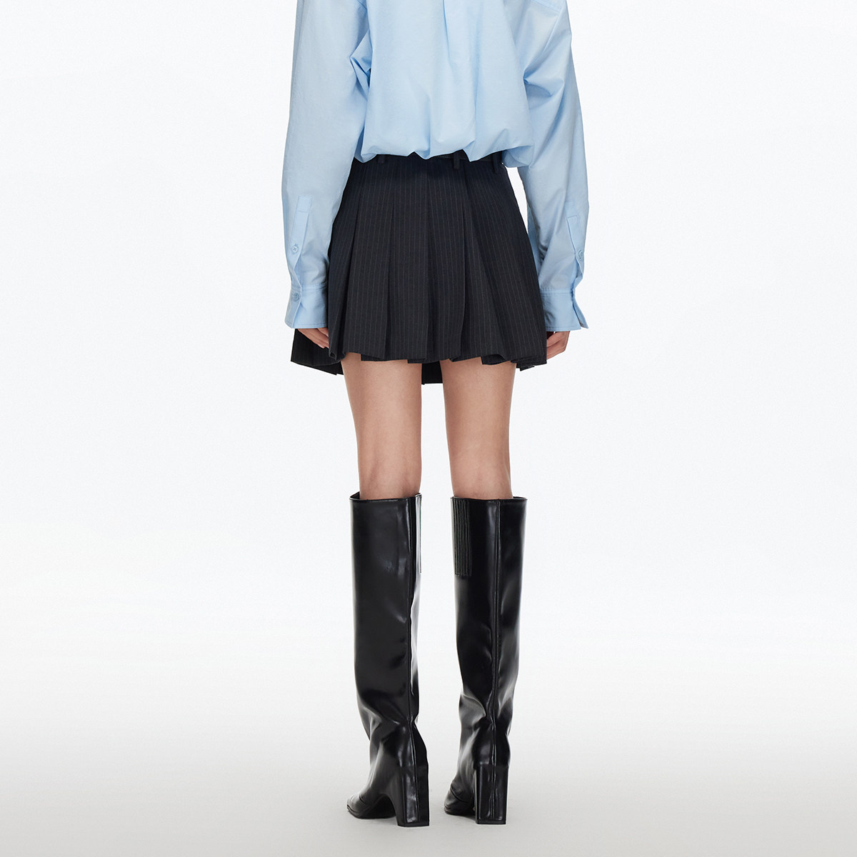 MJ STYLE灰色百褶西装裙女秋冬半身裙高腰休闲大摆a字过膝中长裙