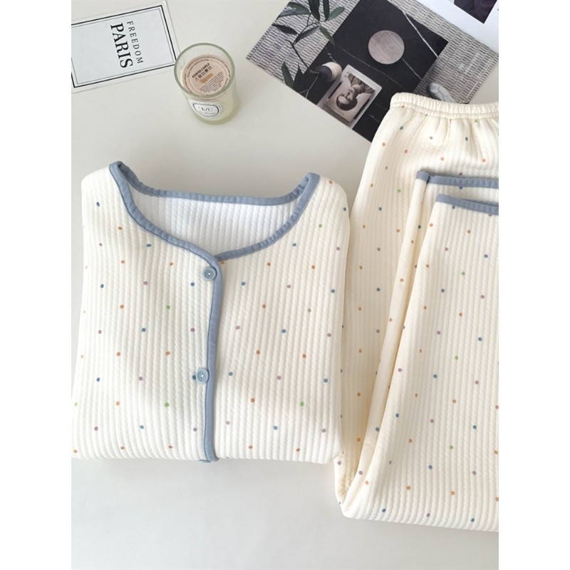 红豆空气夹棉睡衣女秋冬季纯棉加厚长袖长裤套装家居服春波点柔软