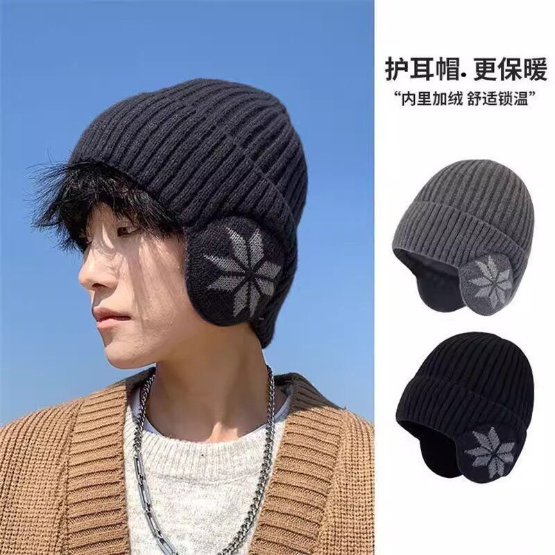 男士冬季帽子加绒毛线帽男女户外防寒防风加厚套头帽护耳保暖棉帽