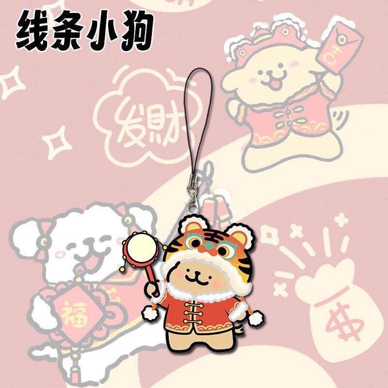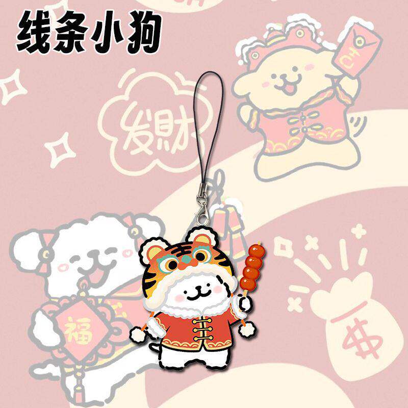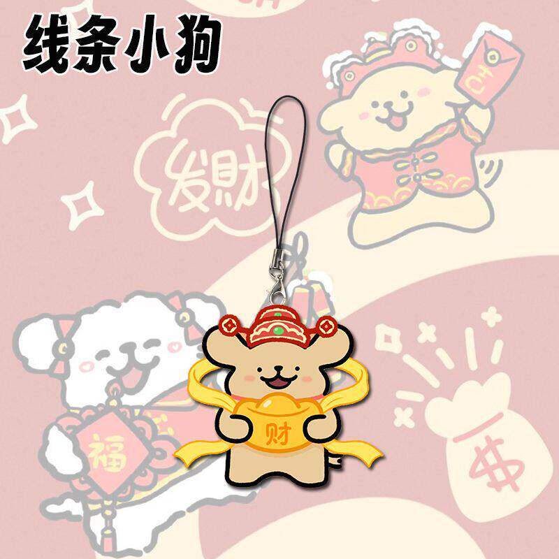 新款线条小狗可爱手机链卡通学生书包亚克力挂件过年小礼品