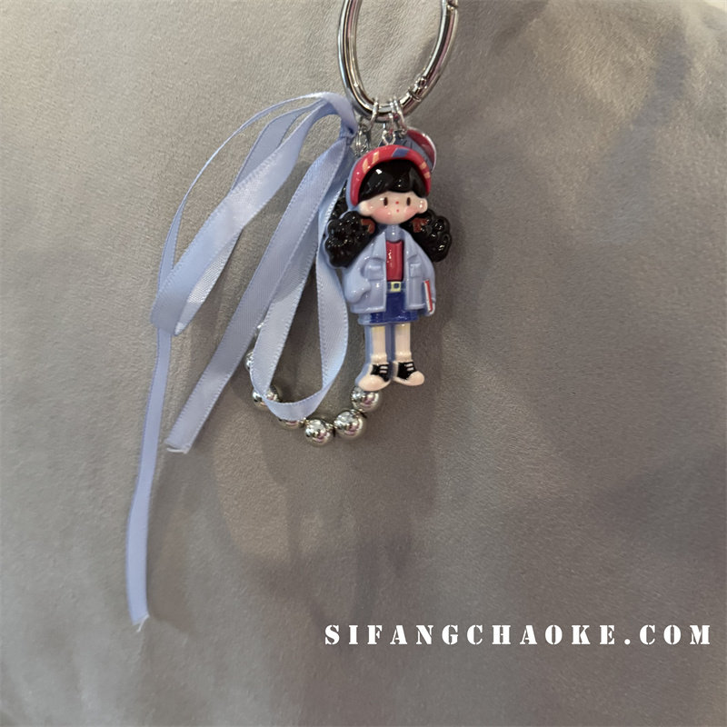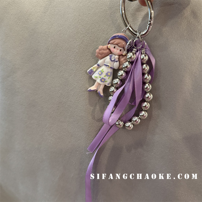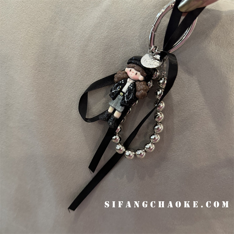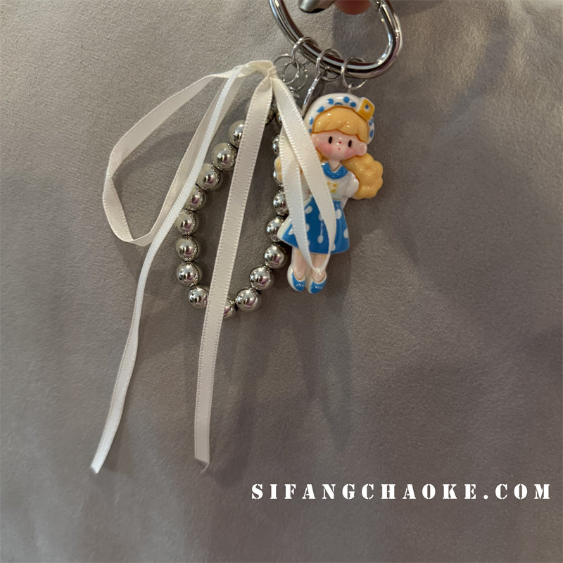 银珠蝴蝶结爆米花妹车钥匙扣手机壳挂件书包挂饰创意包包挂绳