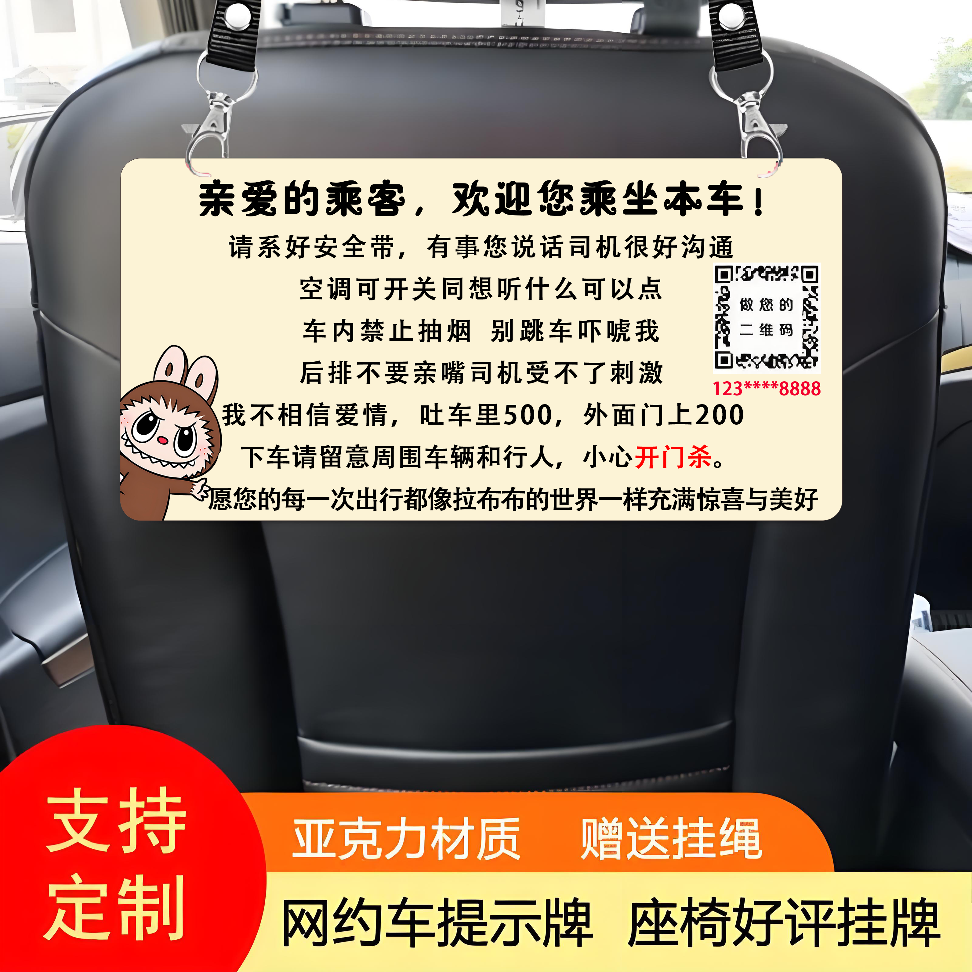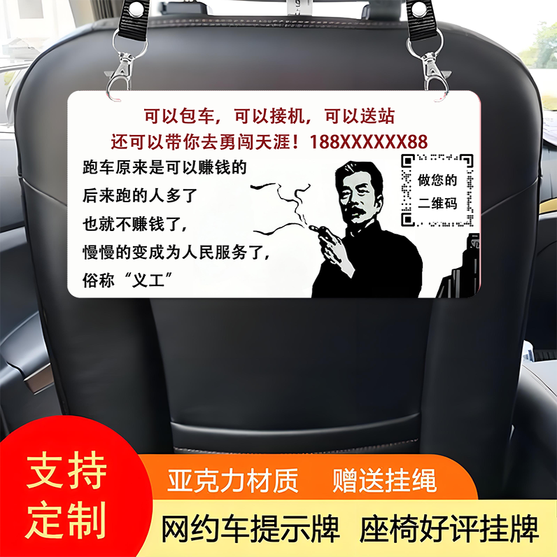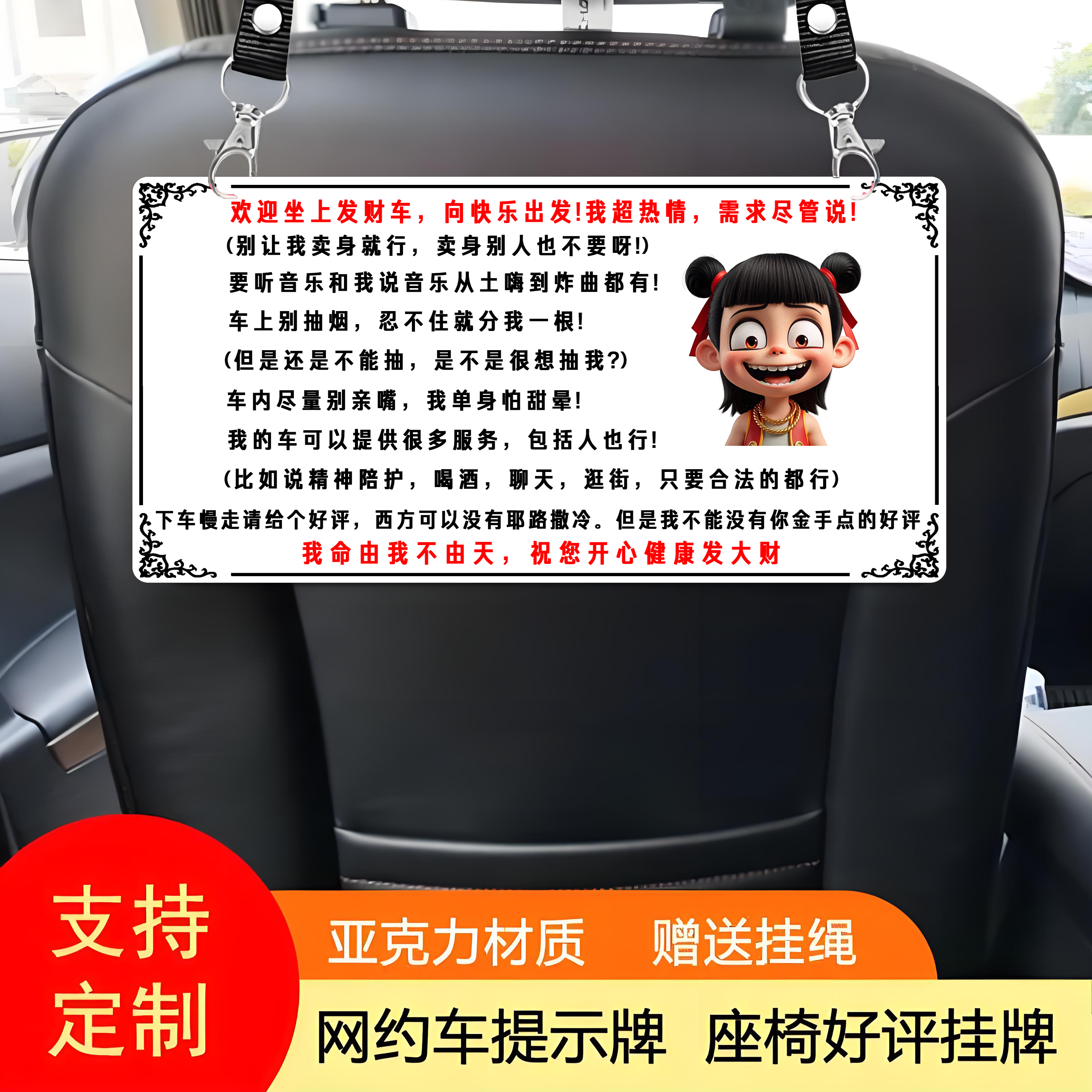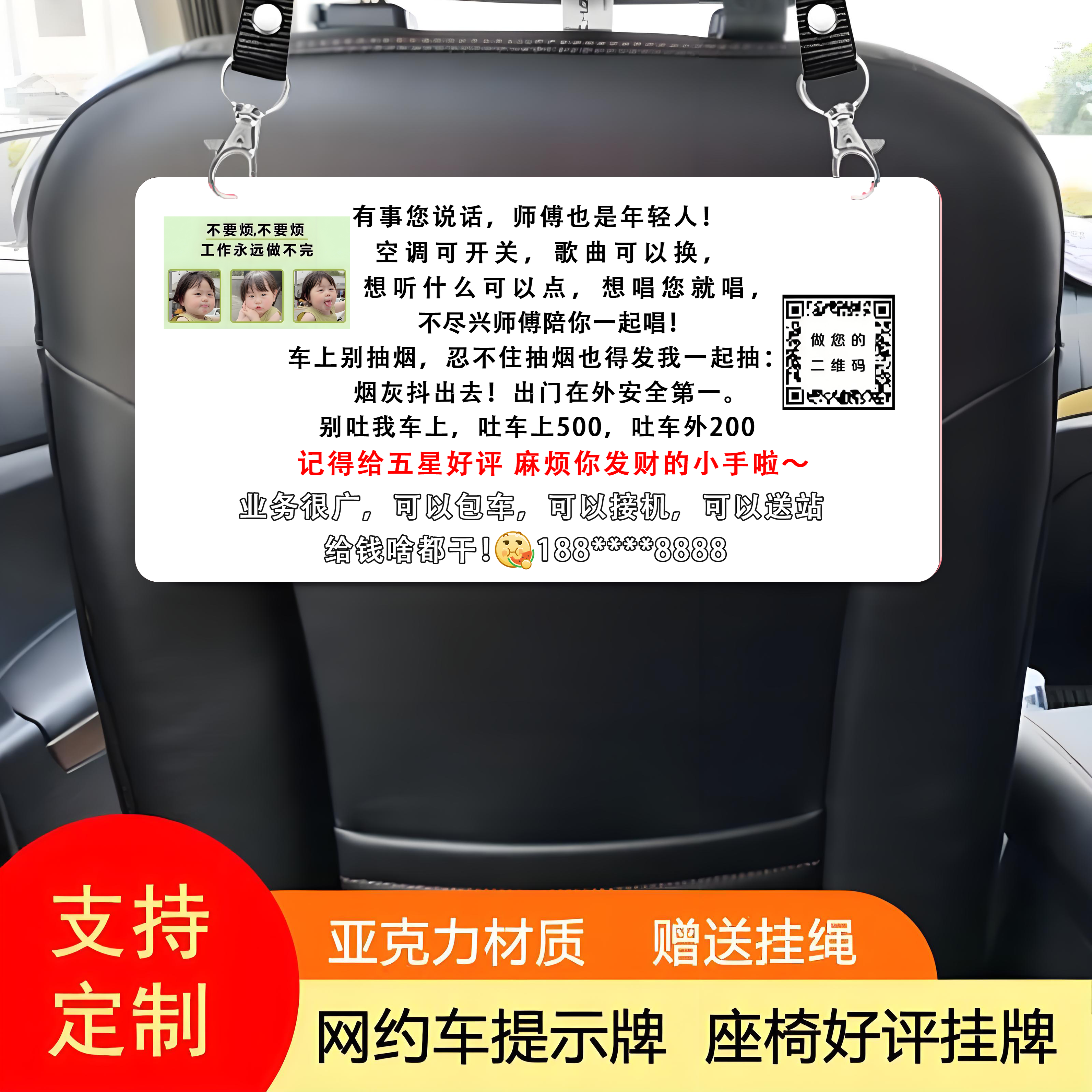 网约车滴滴点赞温馨提示牌座椅吊牌亚克力防水广告牌搞笑交友收款