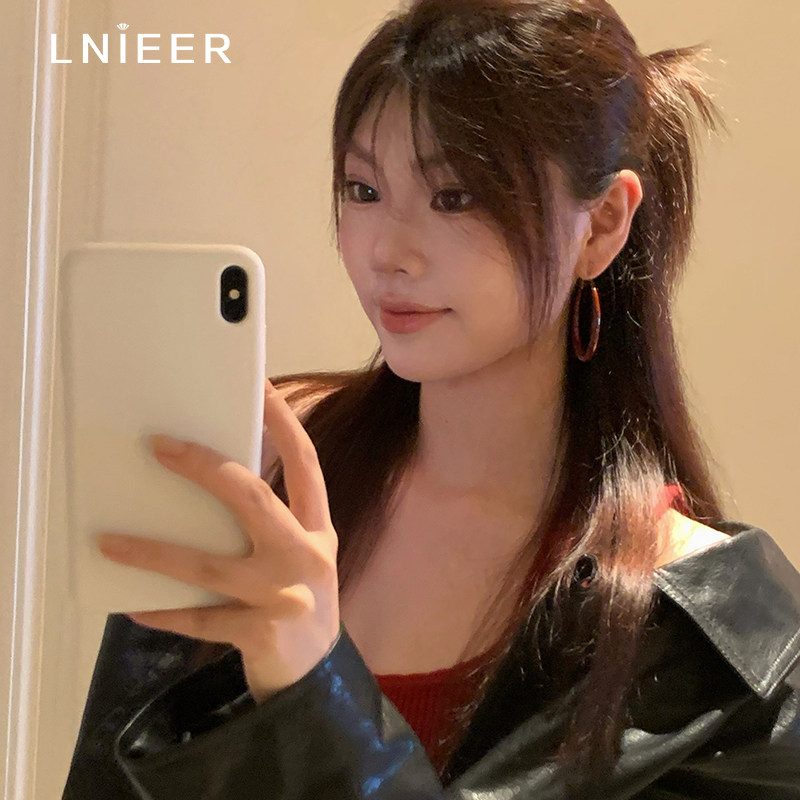 999纯银耳针耳环圈圈大圈秋冬红色耳饰女耳圈高级感轻奢素圈耳夹