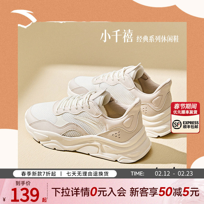 安踏小千禧休闲鞋女鞋秋冬新款老爹鞋女款厚底软底皮面运动鞋官方