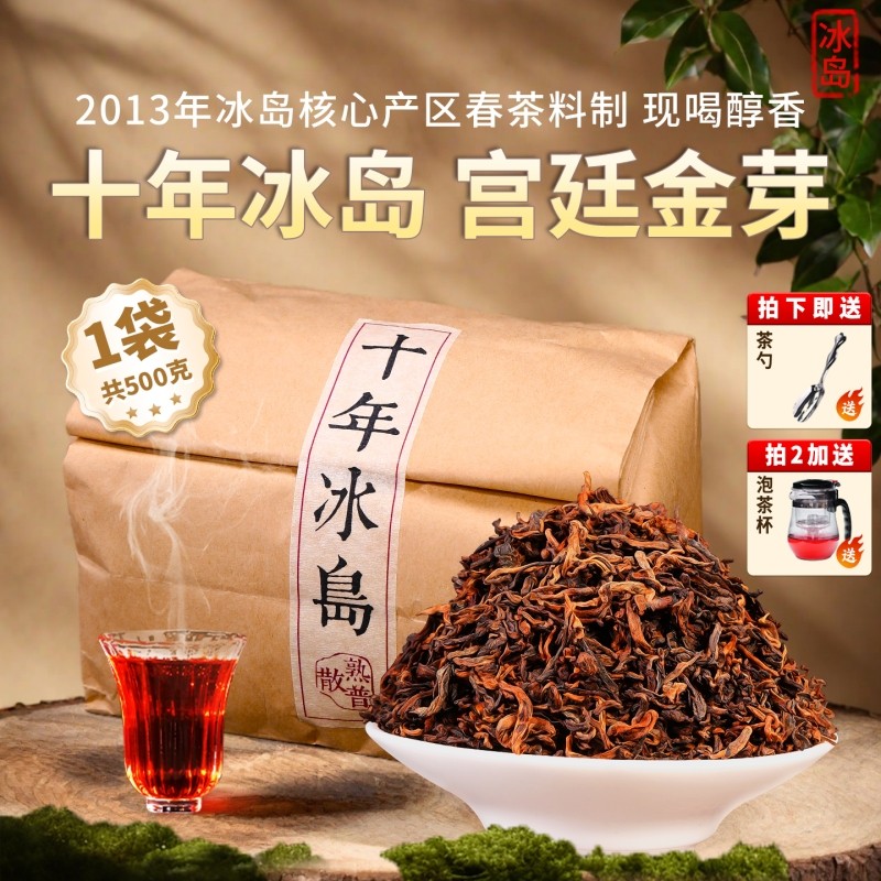 十年冰岛普洱茶熟茶散茶叶云南勐海古树宫廷金芽老料熟普口粮茶叶