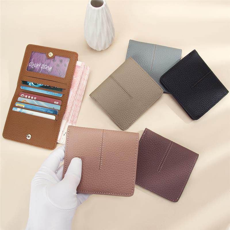 头层牛皮钱包女士短款简约多卡位折叠真皮钱夹轻薄款小巧皮夹卡包