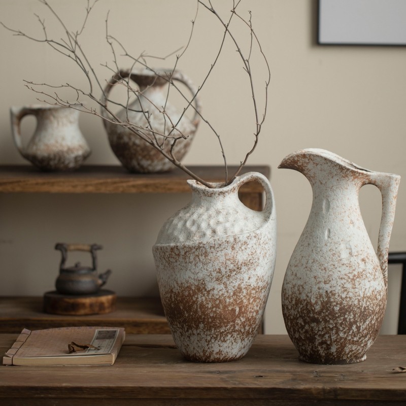 景德镇斑驳老旧陶瓷手工花瓶侘寂风花器客厅玄关插干花装饰品摆件