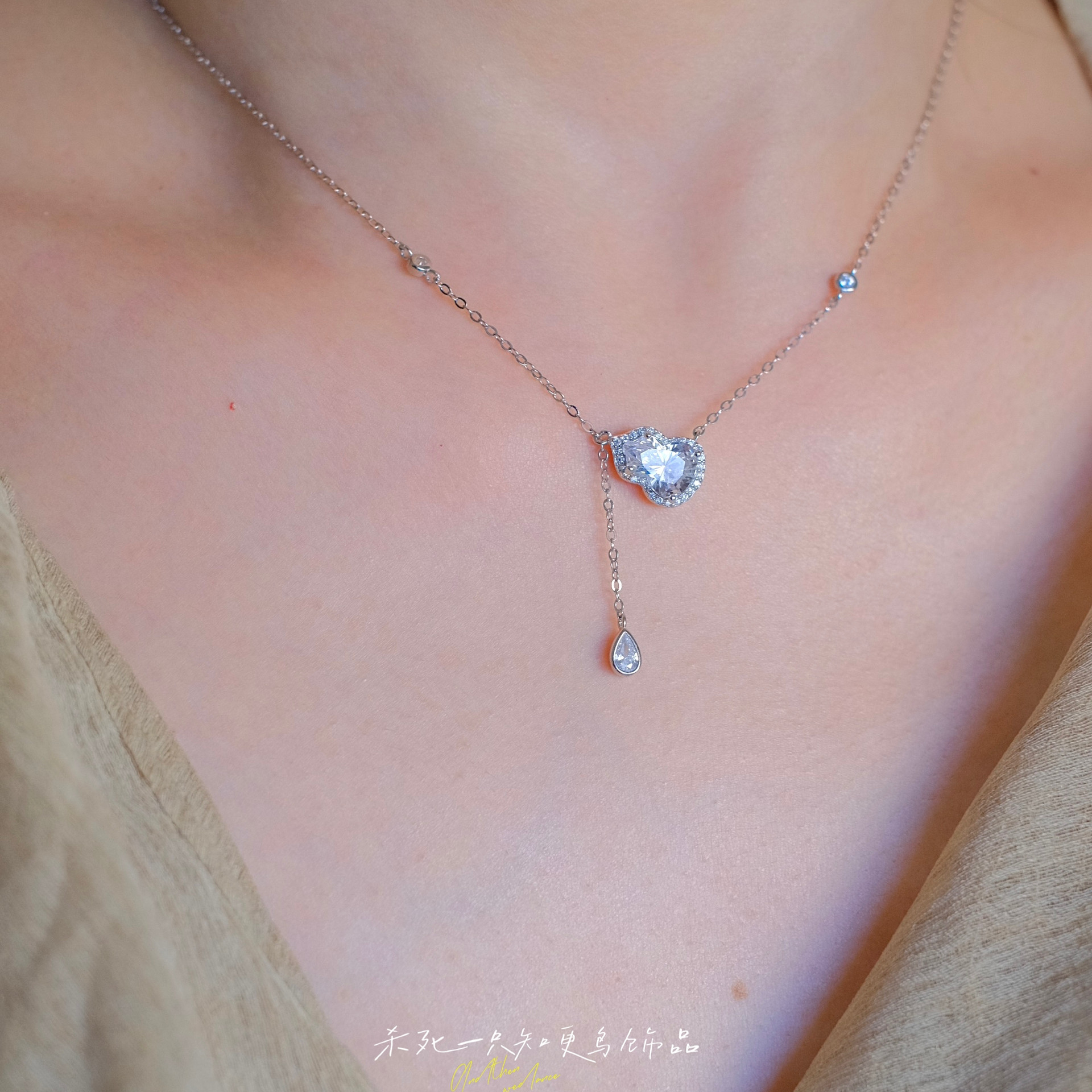 《满钻葫芦》999纯银 轻奢高级感小众设计锆石水滴流苏项链锁骨链