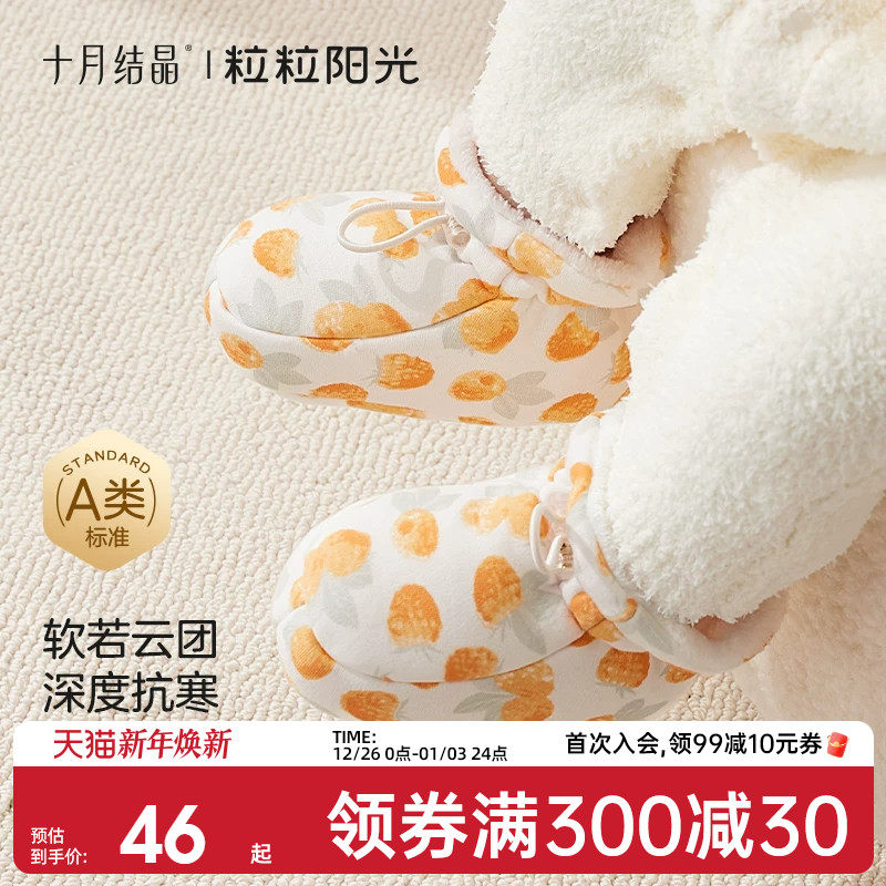 十月结晶新生儿脚套夹棉秋冬男女宝宝护脚套0-12个月婴儿软底鞋子