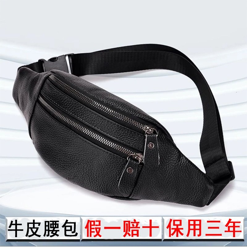 头层牛皮腰包手机包男士胸包多功能男款真皮单肩包斜挎跑步防水