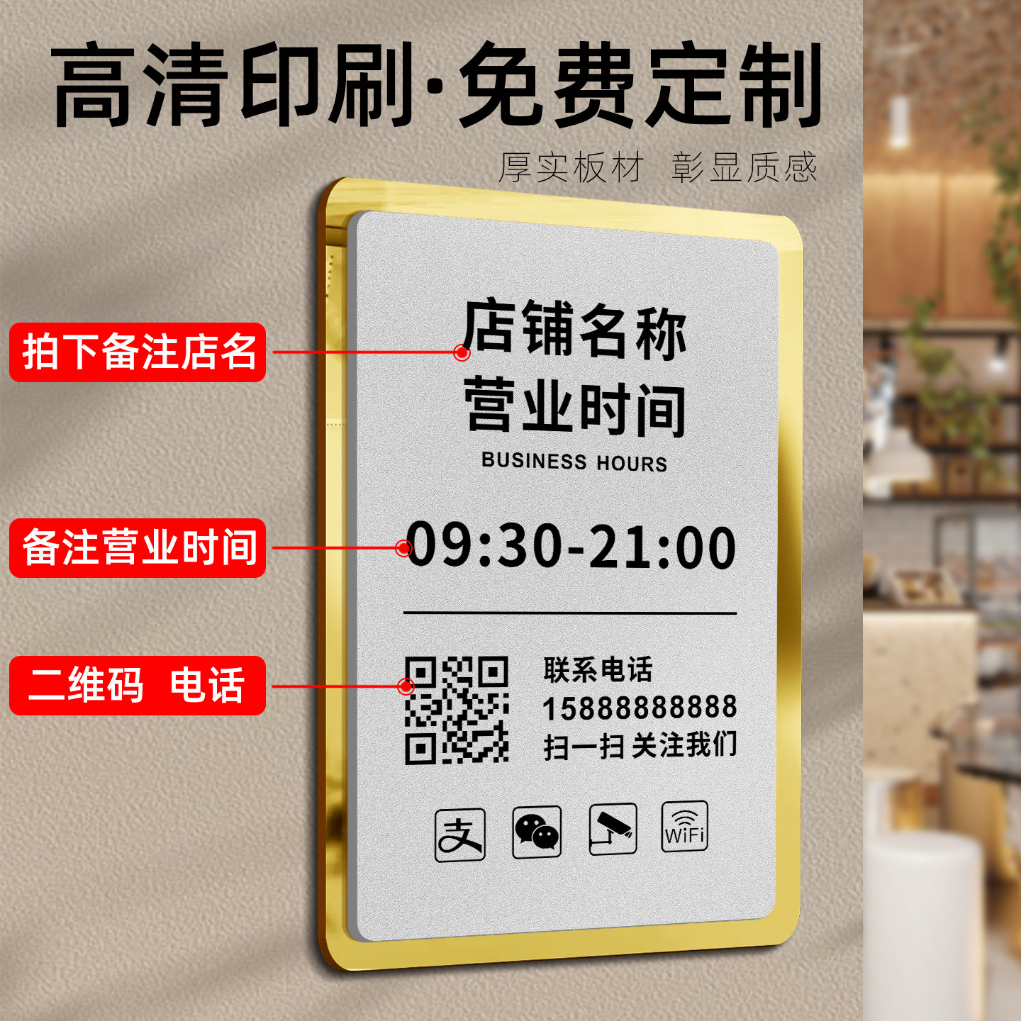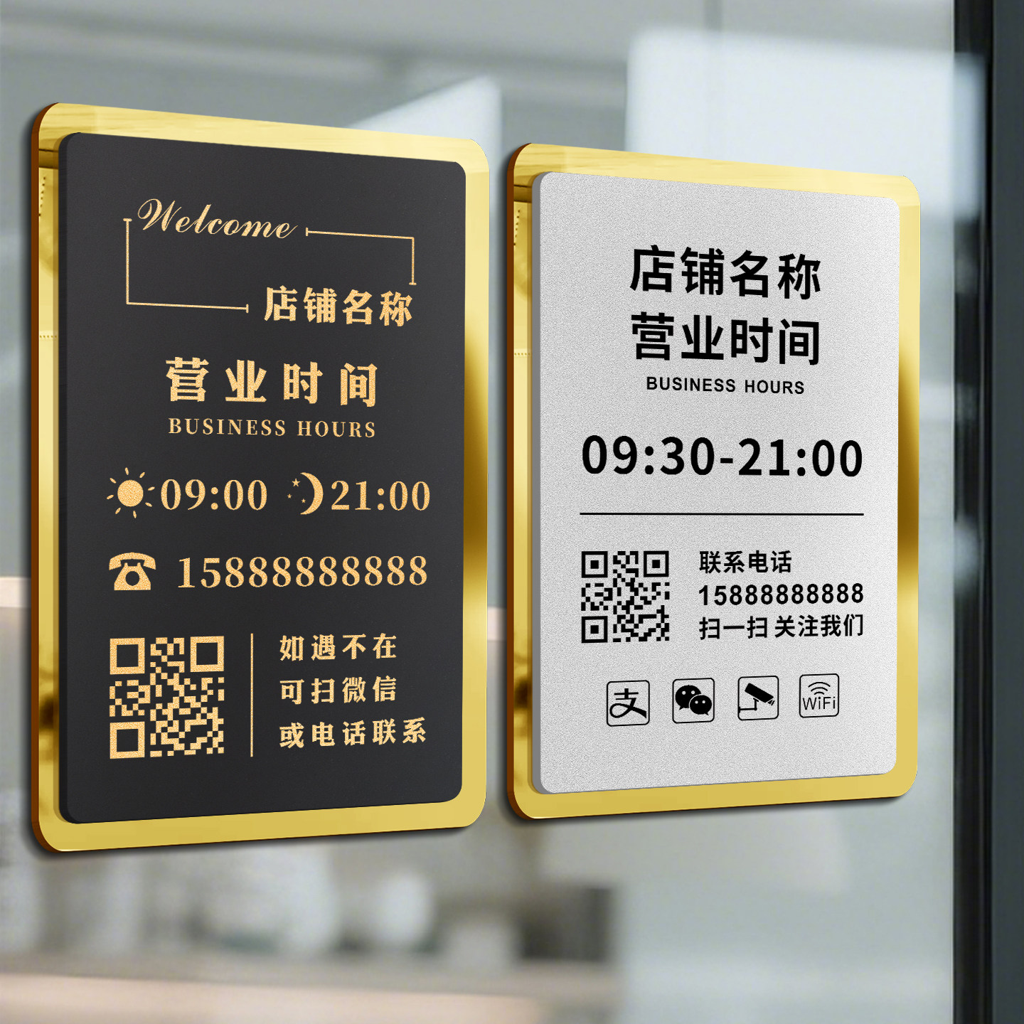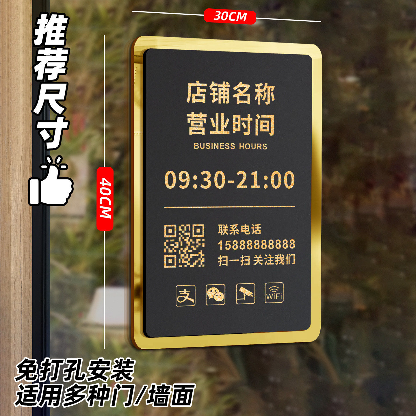营业时间告示牌有事外出上班营业中提示牌子高级餐饮订餐门店电话号码挂门理发店美发玻璃贴字广告展示亚克力