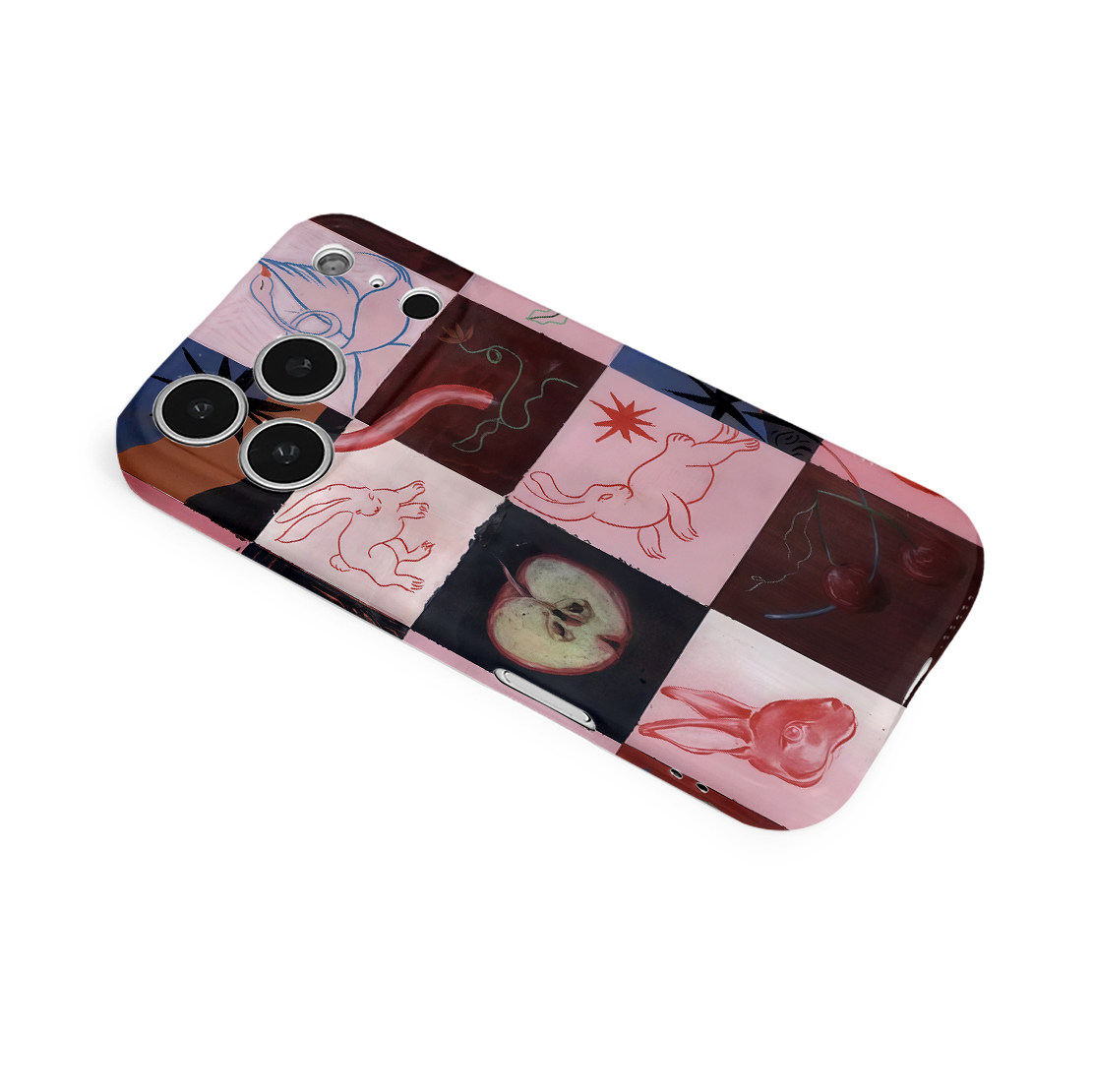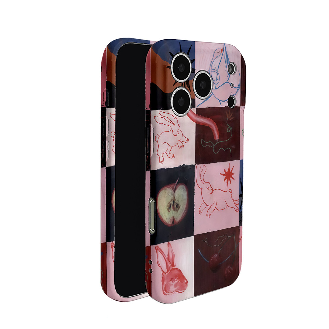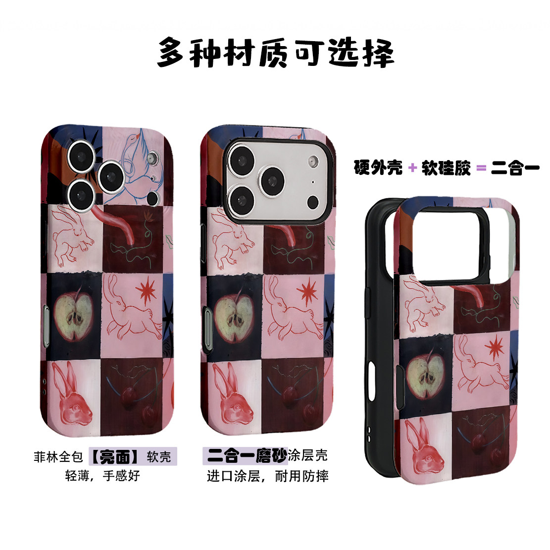 简约艺术马赛克线条兔菲林二合一手机壳适用苹果17nova14华为p70mate60小米15opporen14ovivo荣耀300iPhone16