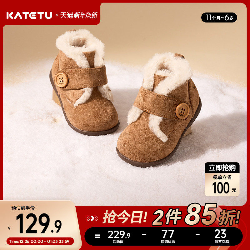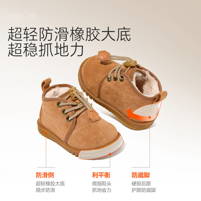 卡特兔宝宝棉鞋加绒冬季女童学步鞋毛毛鞋儿童雪地靴机能鞋童鞋