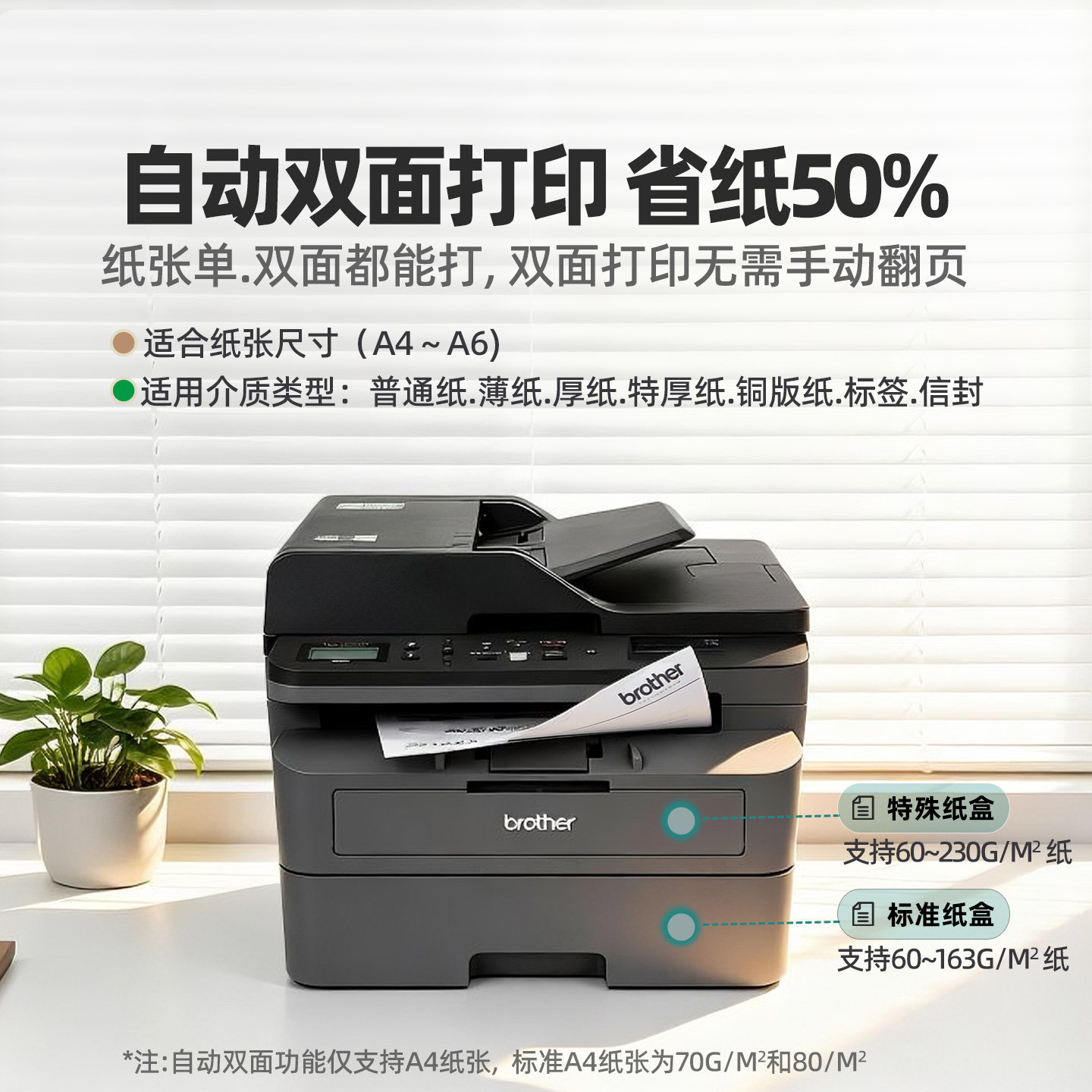 兄弟L2548dw黑白自动双面激光打印机办公专用高速复印扫描多功能一体机商用A4无线手机远程式打印家用L2508dw