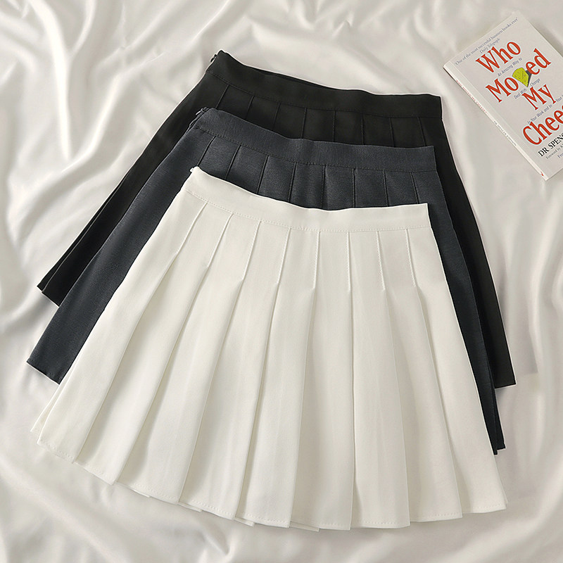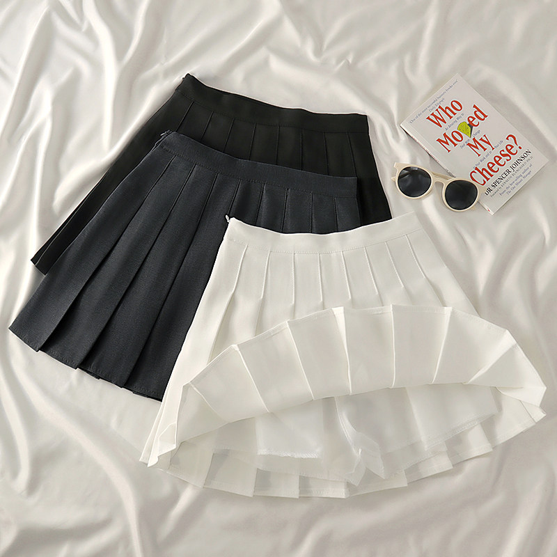 白色百褶裙女夏大码胖mm黑高腰显瘦a字裙学院风半身裙小个子短裙