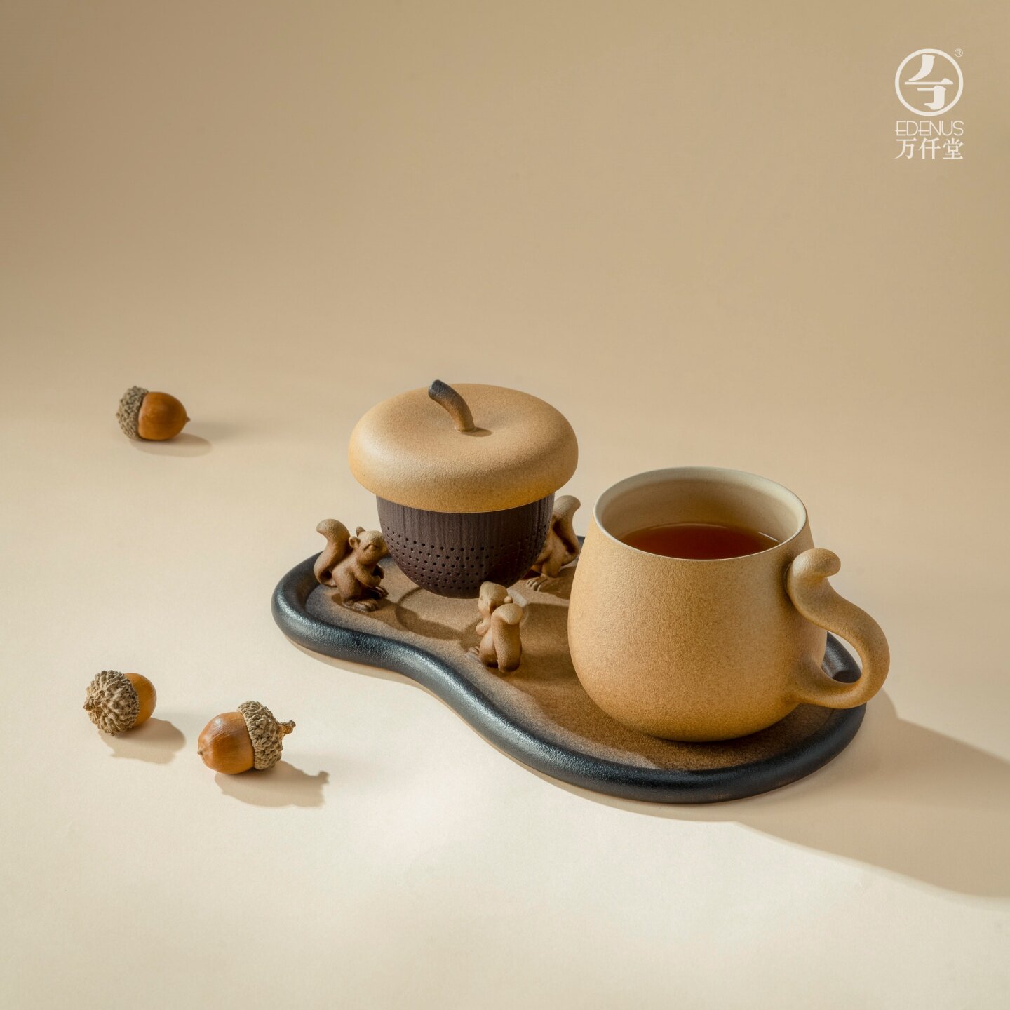 万仟堂新款陶瓷办公杯茶水分离泡茶杯带茶盘家用茶具套装举个栗子