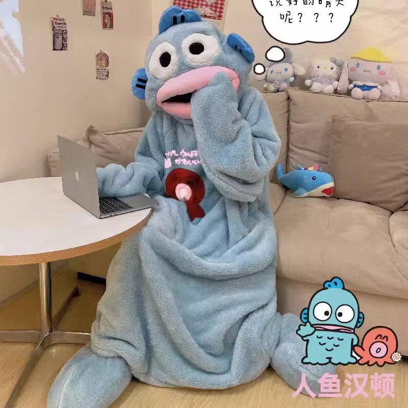 小丑鱼连体睡衣女珊瑚绒卡通可爱搞怪冬季加厚保暖大码睡袍家居服