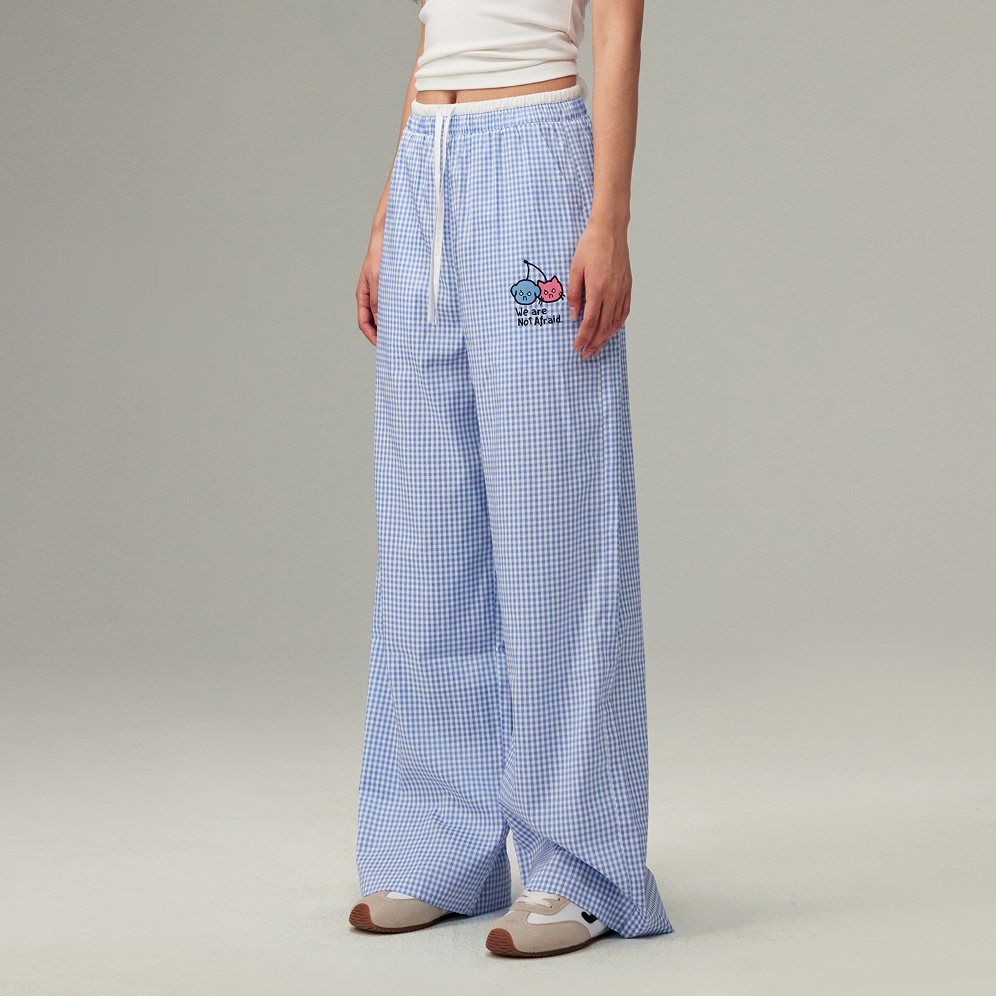 【DNA官方】双腰头撞色印花休闲格子裤2025年夏季新款直筒阔腿裤