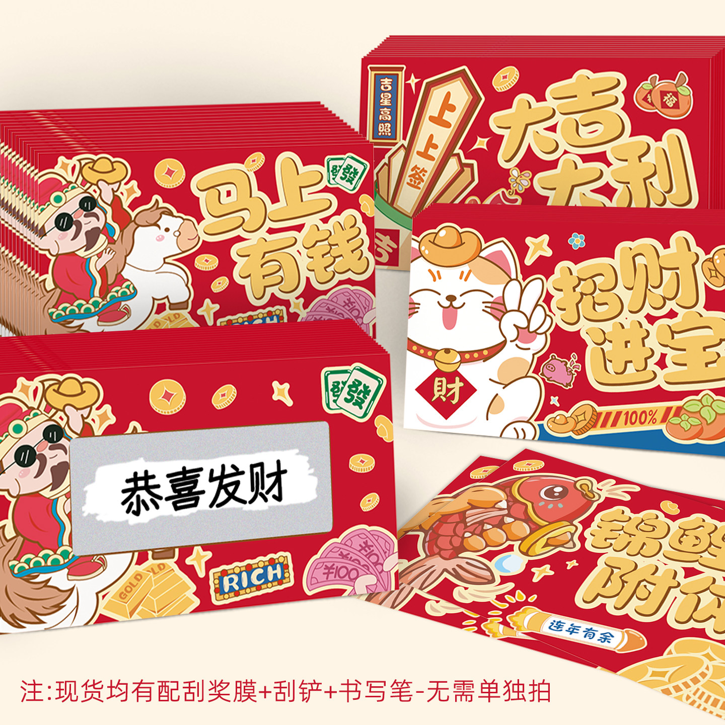 2026新年马年刮刮卡情侣自制卡通可爱创意贺卡年会团建抽奖刮刮卡