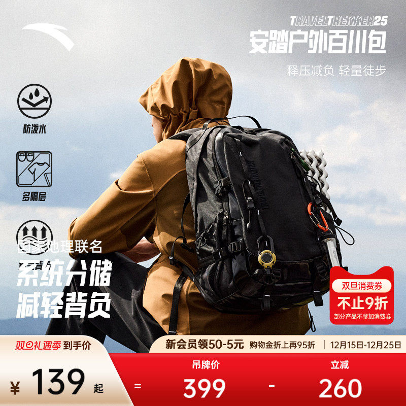 安踏×国家地理丨专业户外包百川包减负背包大容量徒步旅行登山包