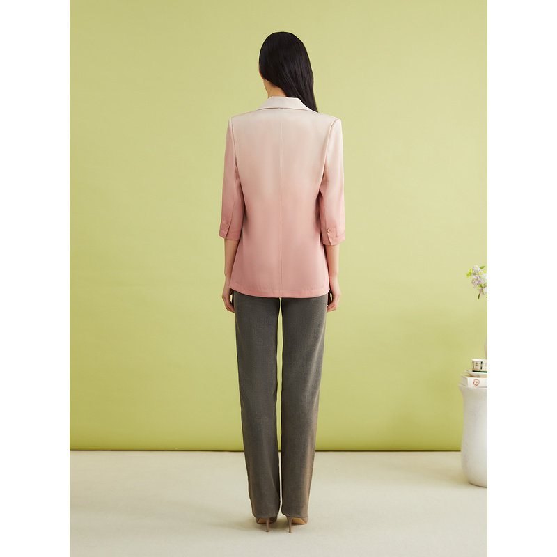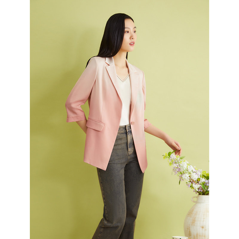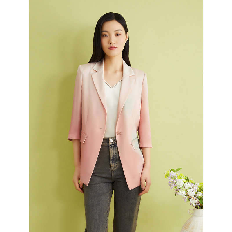 YINER音儿夏季桑蚕丝法式优雅烟灰粉休闲简约西装短外套