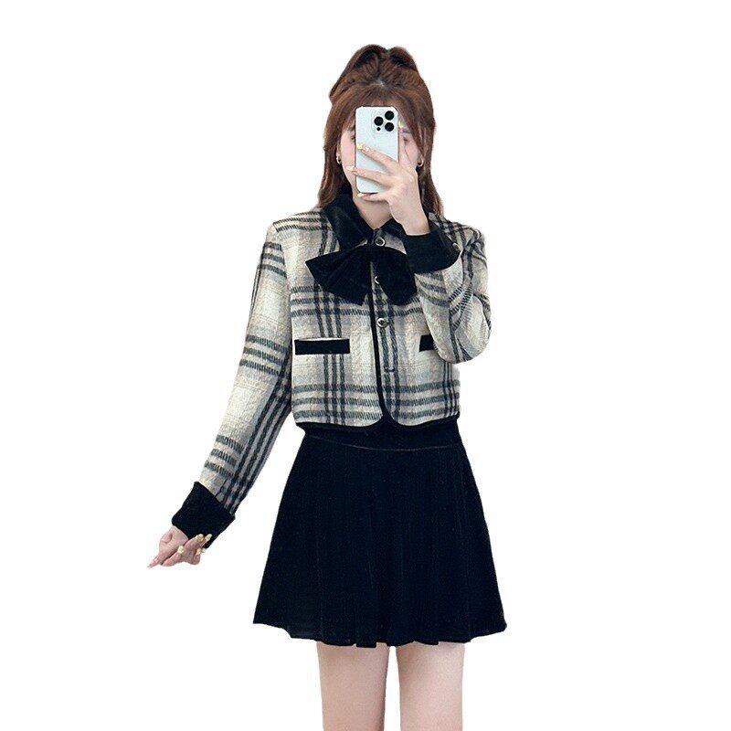 秋新品韩版大码女装微胖mm显瘦气质时尚西装外套半身裙显瘦套装