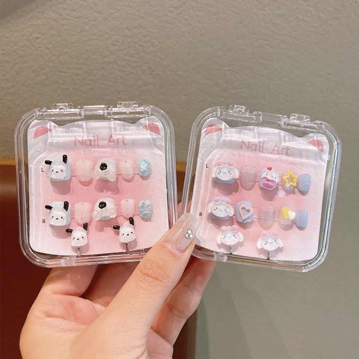 儿童款穿戴甲库米米卡通美甲贴片女孩立体耳夹套装宝宝指甲贴玩具