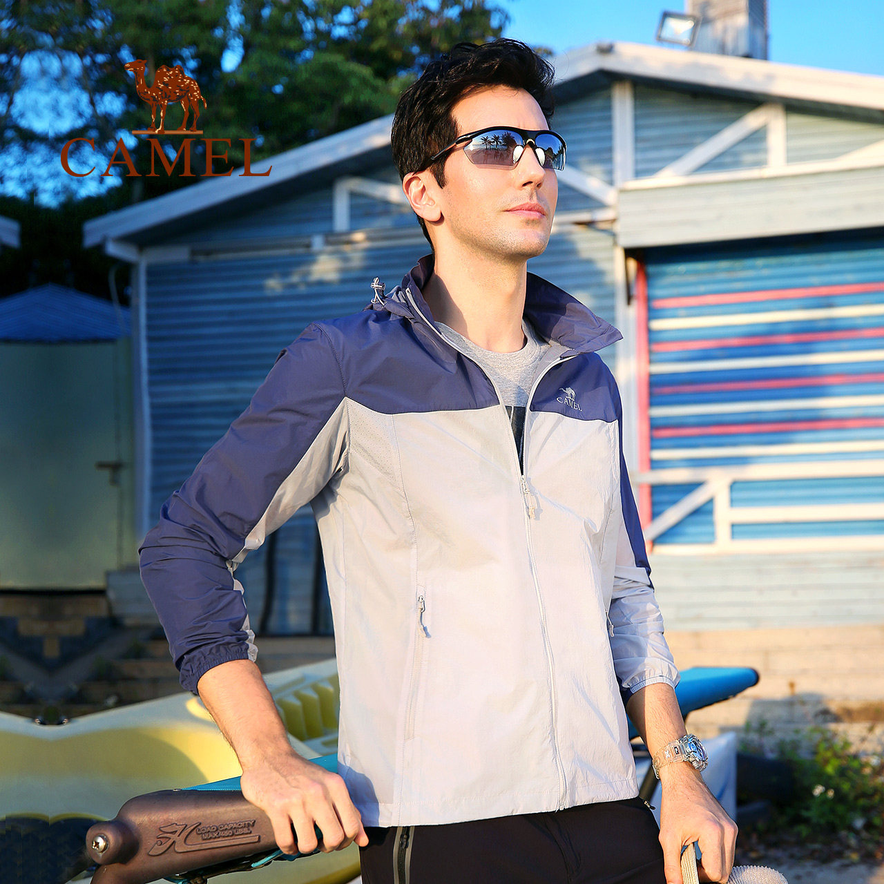骆驼雪壳防晒衣粉色女冰感透气运动风衣外套户外夹克轻薄皮肤衣男