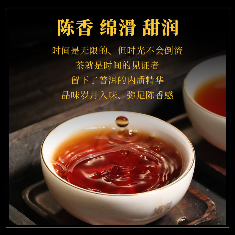 宫明茶叶 云南普洱茶熟茶糯米香小金砖普洱熟茶小圆饼320克礼盒装