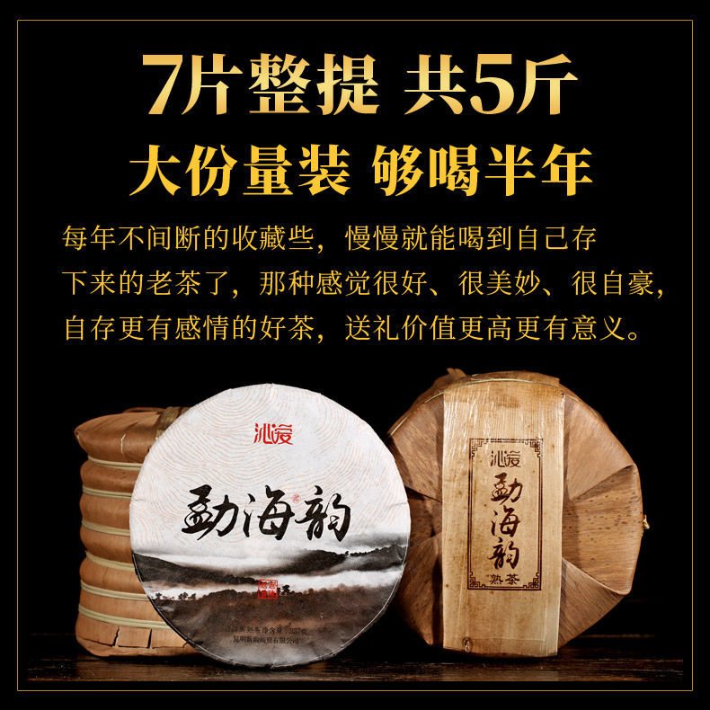 7饼整提2499克沁爱勐海韵陈年普洱茶熟茶云南七子饼茶叶黑茶约5斤