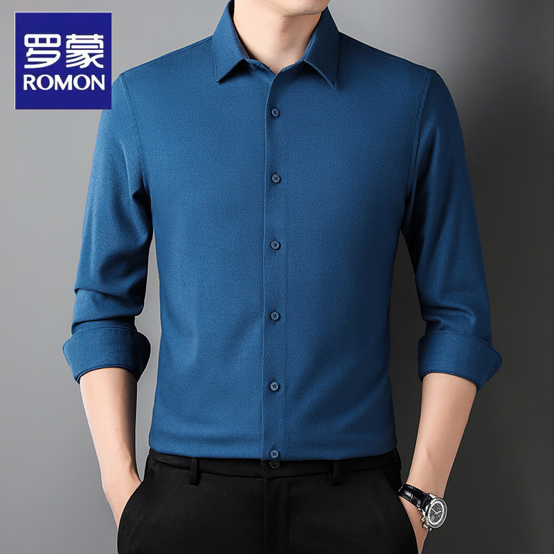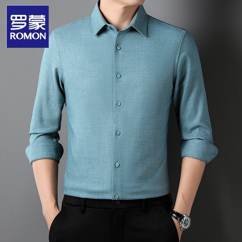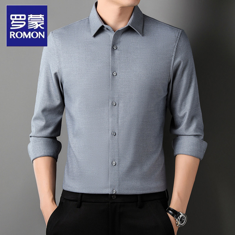 罗蒙绵羊毛男士长袖衬衫商务休闲纯色新款免烫抗皱弹力衬衣上衣