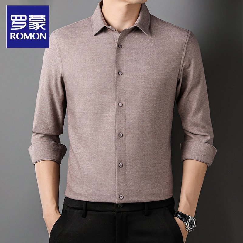 罗蒙加绒衬衫男士长袖秋冬季2025新款商务休闲免烫亲肤衬衣男款