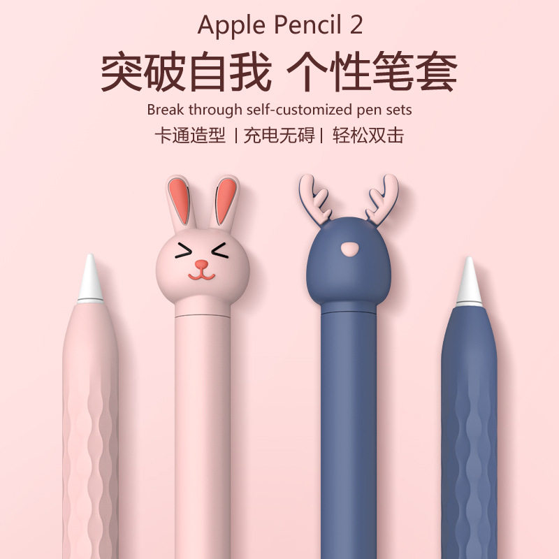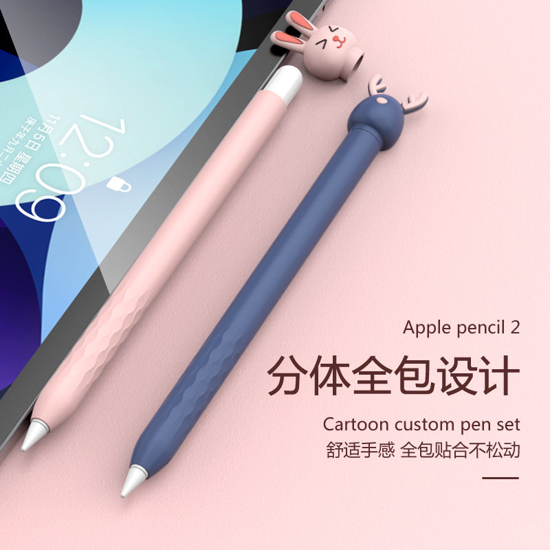 适用苹果2代笔套ipad智能笔保护套硅胶卡通宠物apple手写笔壳