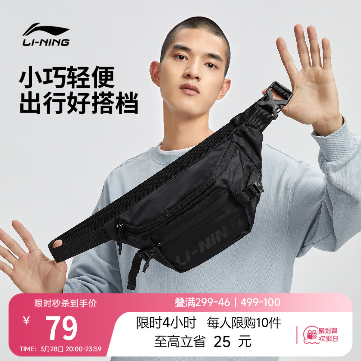李宁腰包男女健身系列情侣同款百搭黑色休闲户外运动包手机斜挎包