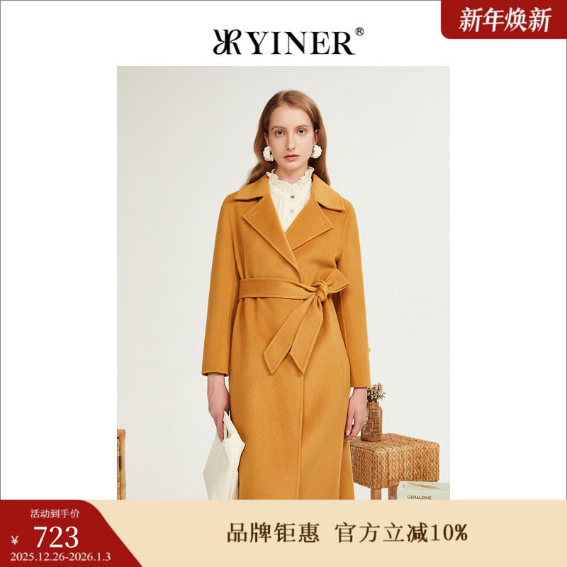 YINER音儿专选女装冬季羊毛含羊绒双面呢大衣