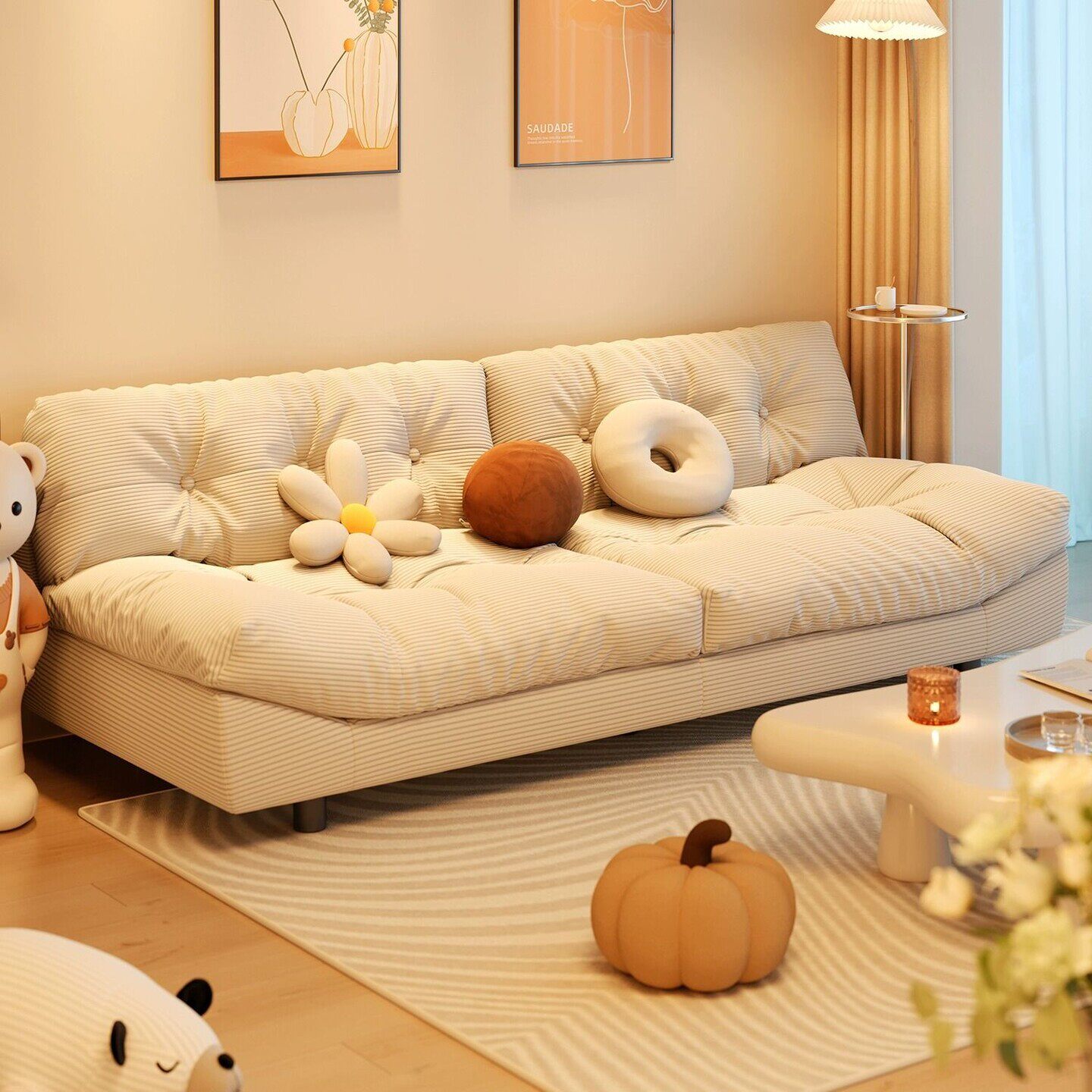 奶油风布艺沙发客厅2025新款小户型家用可拆洗三人位直排云朵沙发