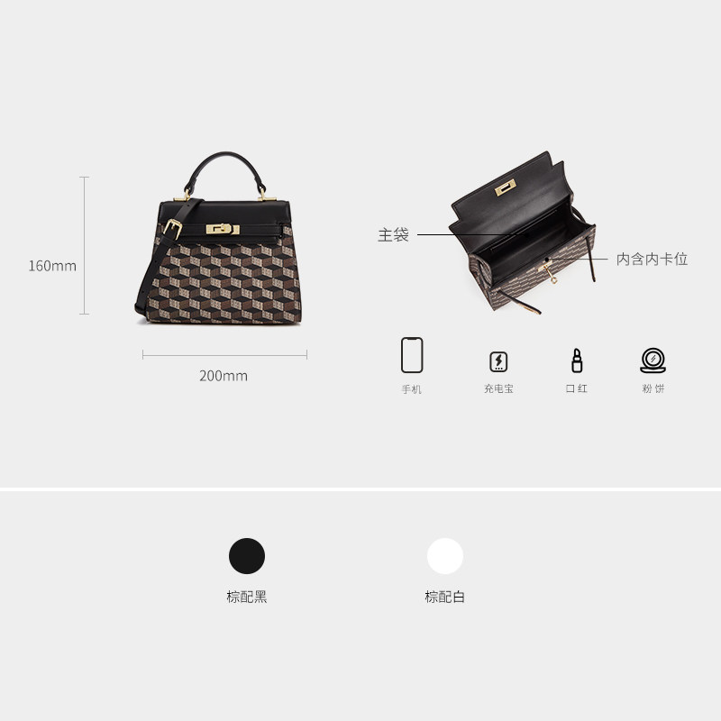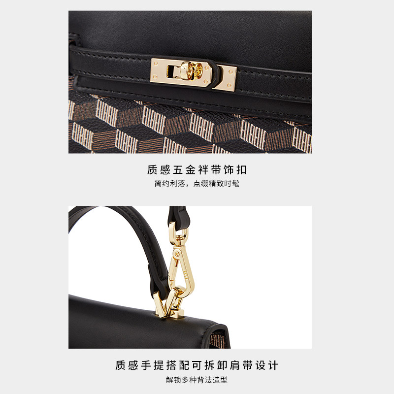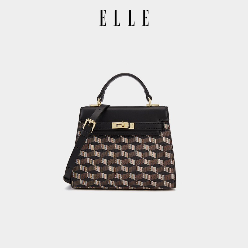 ELLE女包2025新款经典老花手提包复古通勤凯莉包手提翻盖斜挎包女
