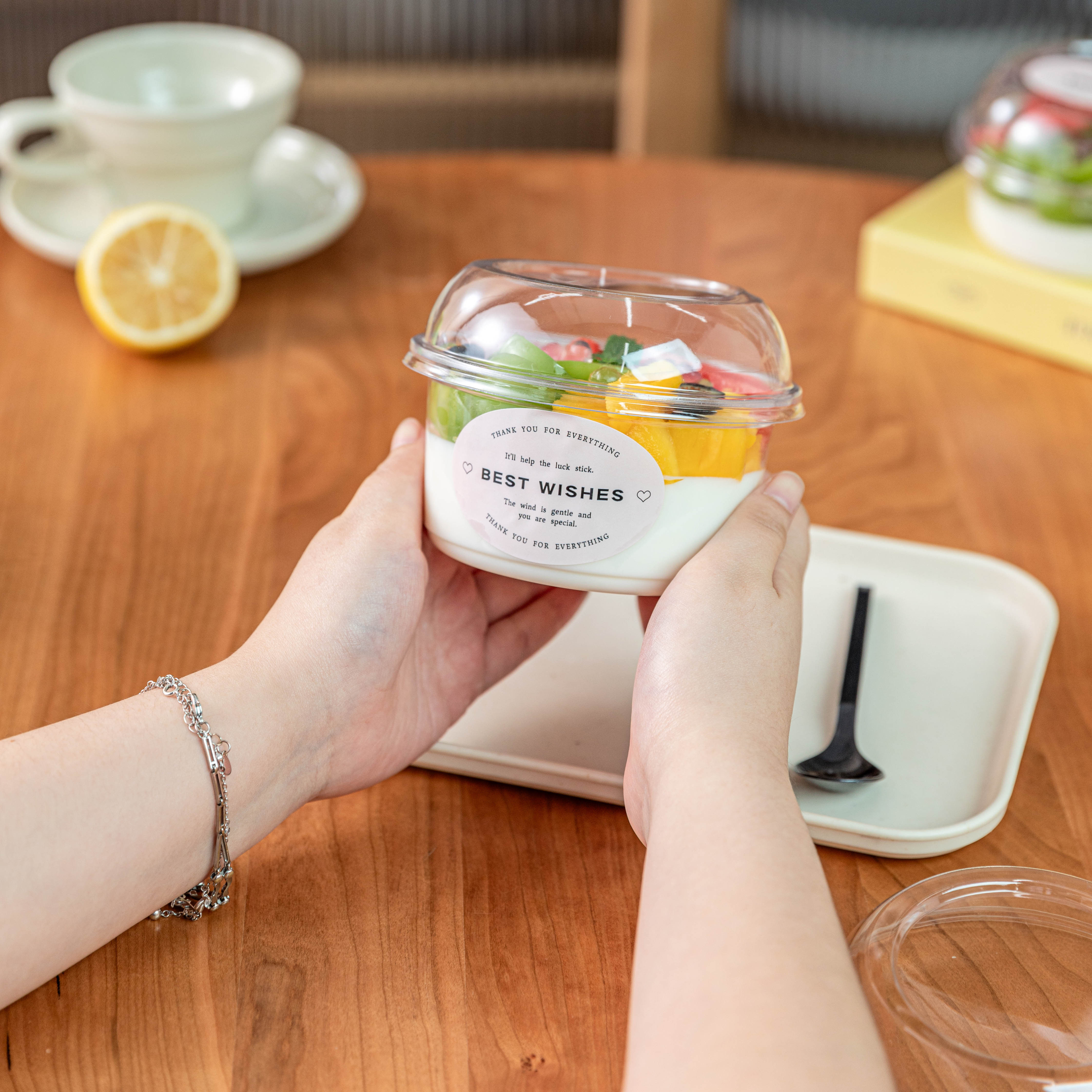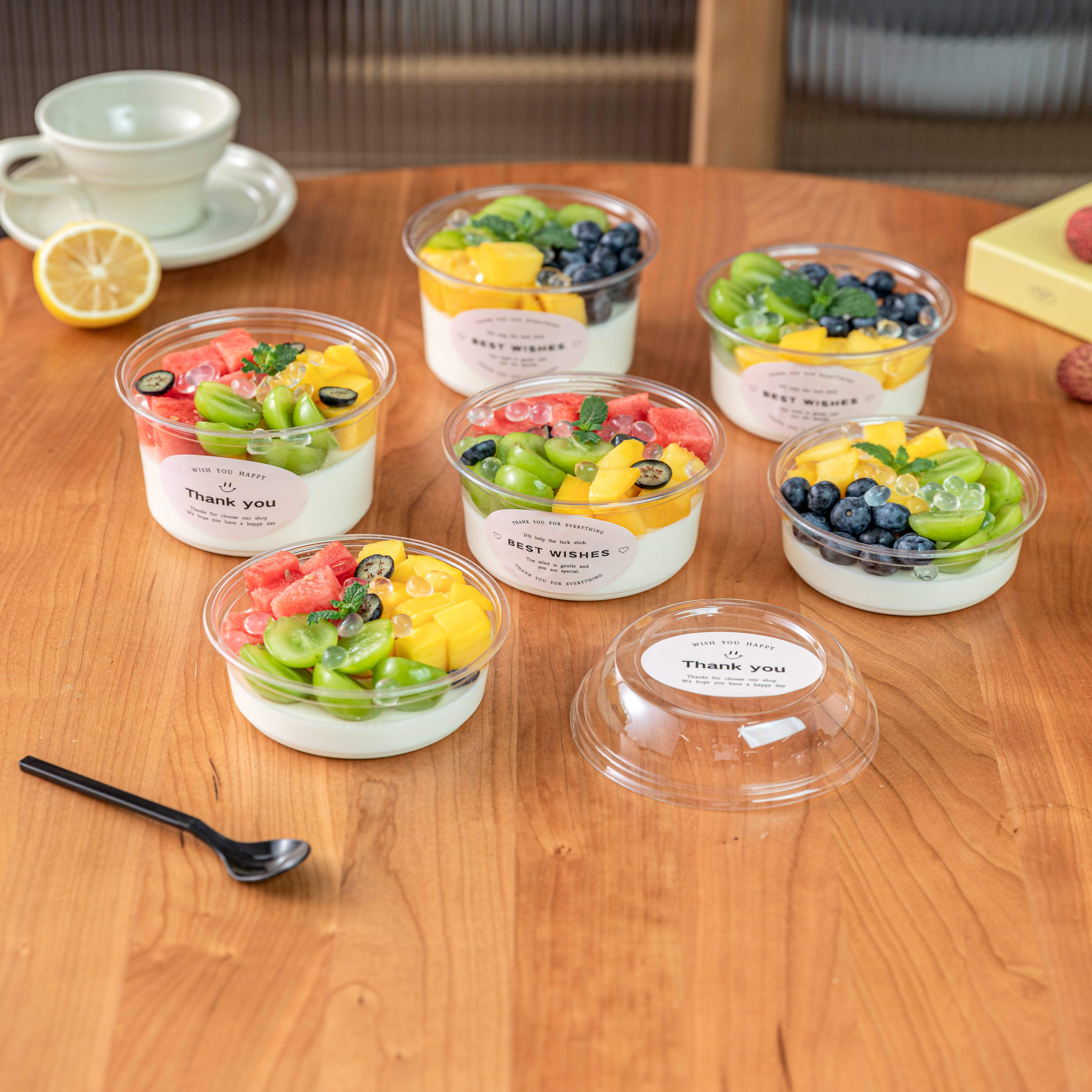 甜品打包盒装圆形带盖子网红芋泥冰白凉粉豆花外卖商用批发无异味
